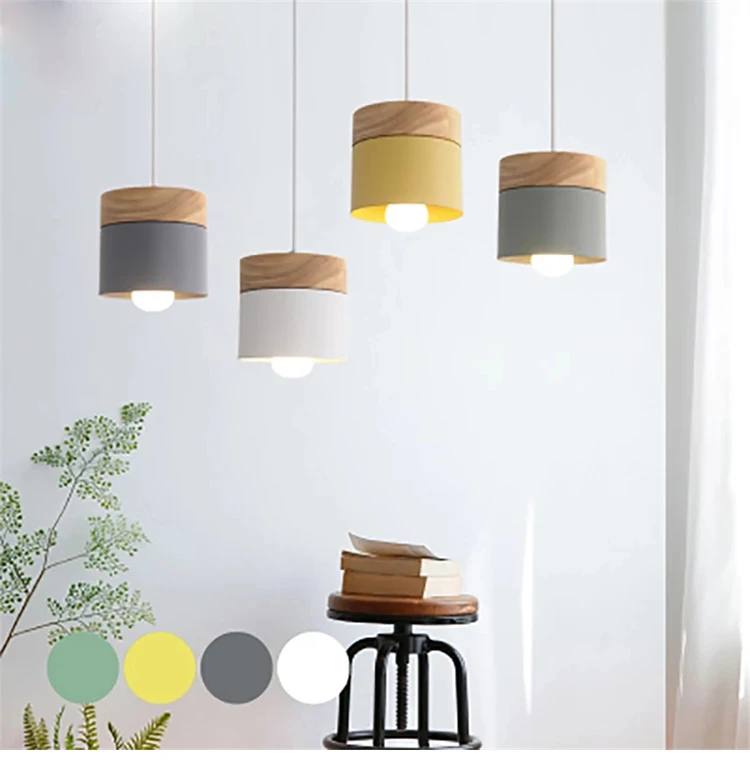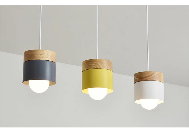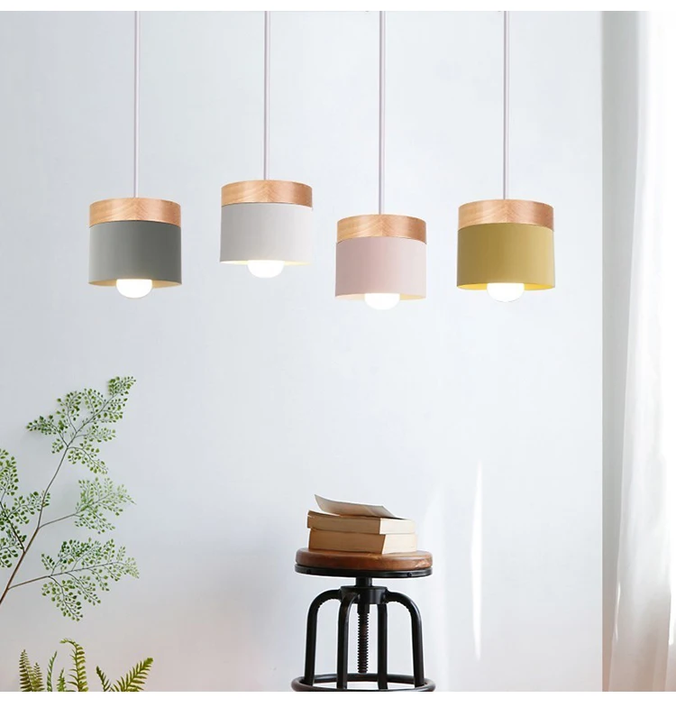 Скандинавский Led деревянный подвесной светильник, украшение для столовой, цветная Подвесная лампа E27 для гостиной, внутреннего освещения, светильник для кафе, дубовые подвесные лампы