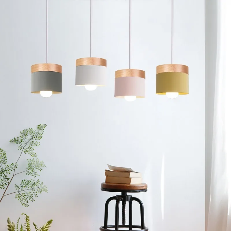 Скандинавский светодиодный деревянный подвесной светильник, украшение для столовой, Цветной Настенный светильник E27, освещение для гостиной, комнатное освещение, подвесные лампы из дуба для кафе