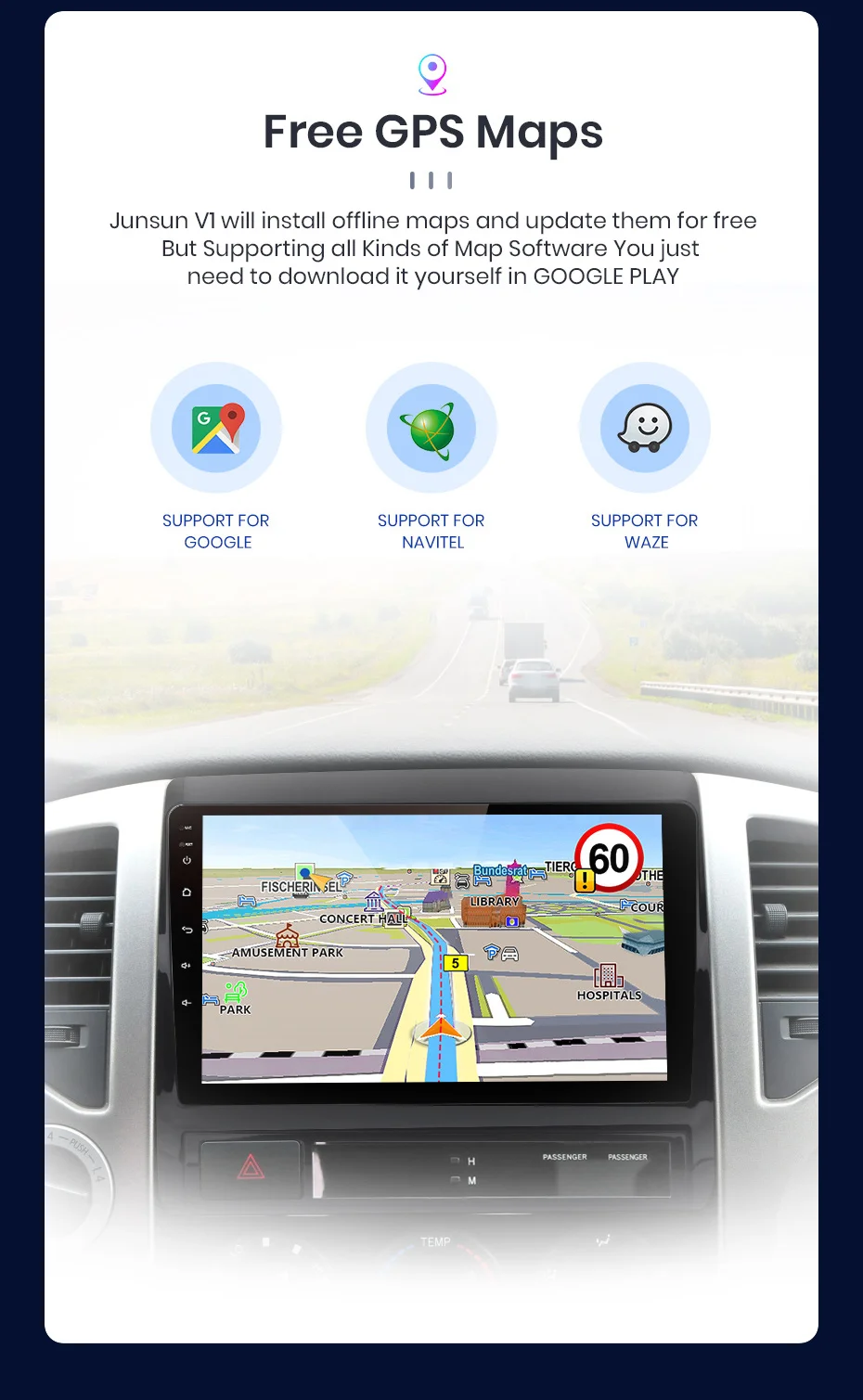 GPS Navigation mapBuilt-in offline map, free update (support Igo/Waze/Google map/Navite)