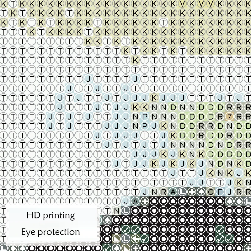 См. Таблицу сравнения на холсте, чтобы определить каждый номер алмаза, который соответствует области печати на холсте.