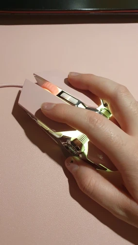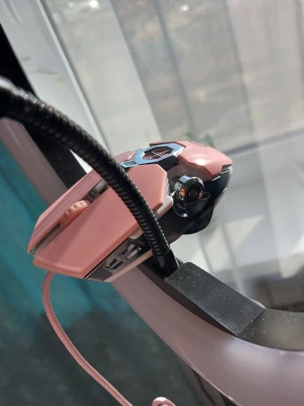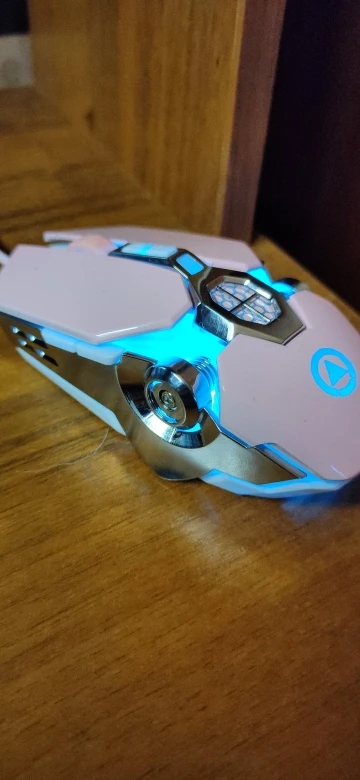Очень качественная и тихая мышка. Цвет в жизни более пастельный, но мне так даже больше нравится. Металлические материалы сбоку тоже выглядят значительно лучше чем на фото