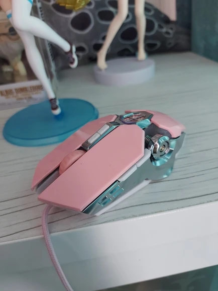Очень красивая мышка. Немного бледный цвет, не такой яркий. Провод тканевый, к USB порту тяжело входит, так что не для постоянного вытаскивания. Чувствуется целосность. Тяжелый по весу, но мне так больше нравится (✿´‿`) Мышка до Москвы пришла за 1,5 месяца. Скорее в новом году застряло на таможне. Всё нормально (/・ω・)/ В общем, РЕКОМЕНДУЮ