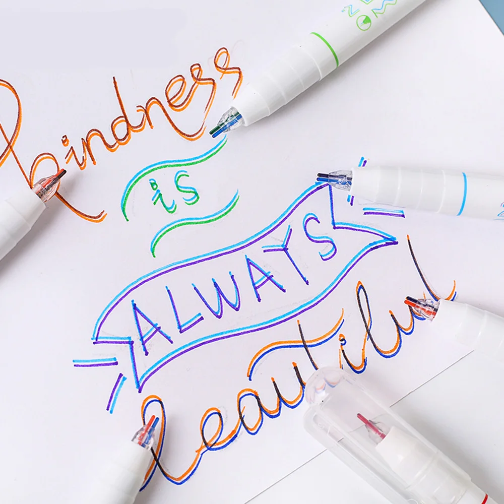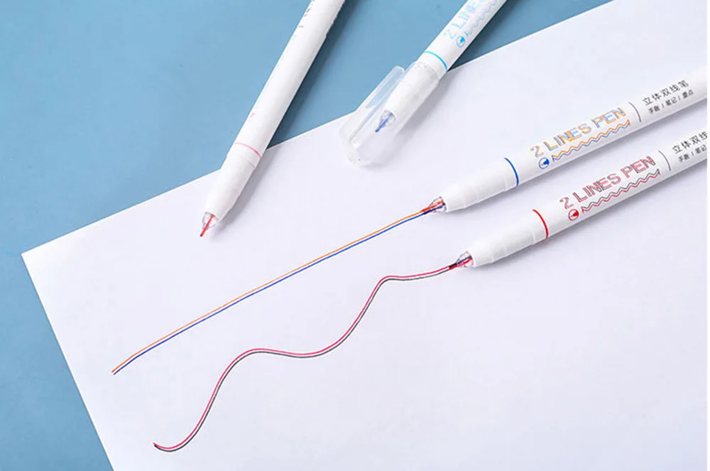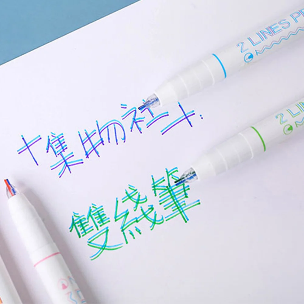 1 шт., Kawaii, двойная линейная ручка, маркер для рисования, каллиграфическая надпись, цветной флуоресцентный хайлайтер, скрапбукинг, ручка, школьные канцелярские принадлежности
