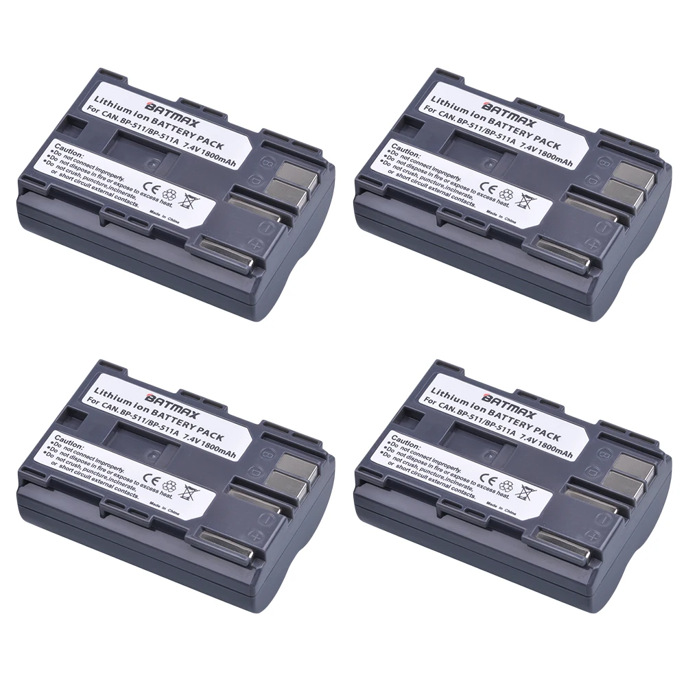 Аккумулятор 4X, светодиодный, BP 511, 511A, BP511, BP511A, двойное зарядное устройство USB, для Canon EOS 40D, 300D, 5D, 20D, 30D, 50D, 10D, D60, G6