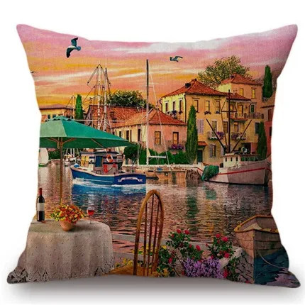 Синяя наволочка для подушки в скандинавском стиле, океан, средиземн...