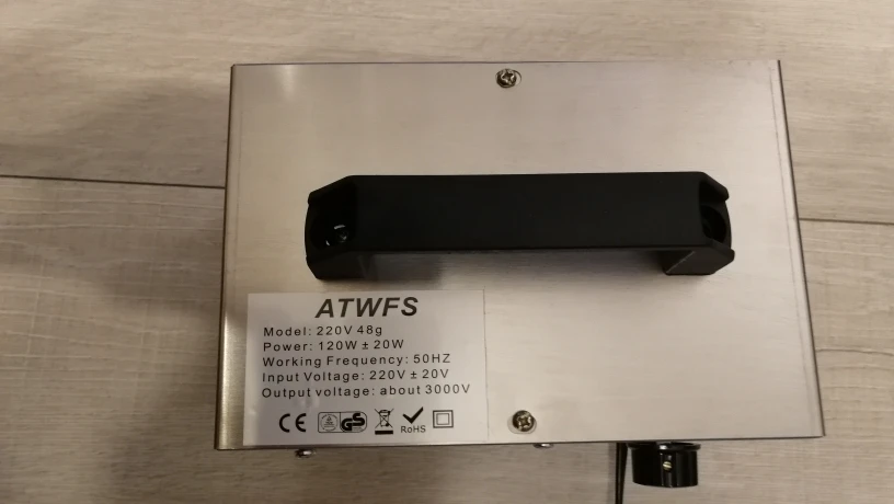 Я заказал один с самой большой мощностью (48 г), не ожидая, что смогу обеспечить это количество озона, но, к моему удивлению, он работает абсолютно так, как это предусмотрено! Я попробовал его в комнате 30 м2 с десяти минутным временем работы. После лечения была необходима длинная вентиляция в течение часа, чтобы пополнять комнату дышащим свежим воздухом! :)