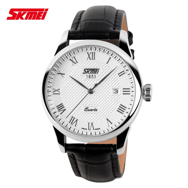 Часы наручные SKMEI Мужские кварцевые, деловые брендовые Роскошные водонепроницаемые с кожаным ремешком, 3 бар