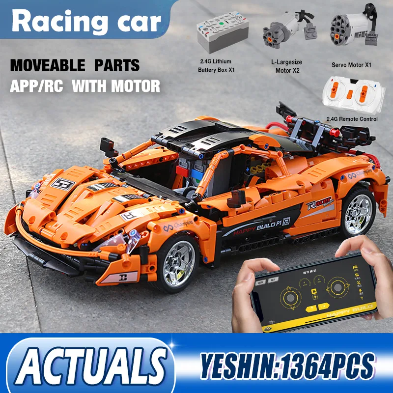 Yeshin моторизованный гоночный автомобиль McLaren P1 MOC 20087, высокотехнологичный автомобиль с дистанционным управлением через приложение, строительные блоки, кирпичи, детские игрушки, подарки