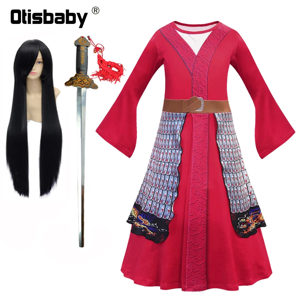 Женский костюм принцессы на Хэллоуин, парик для девочек, традиционное китайское платье, красное платье, Детский Меч Хуа Мулан