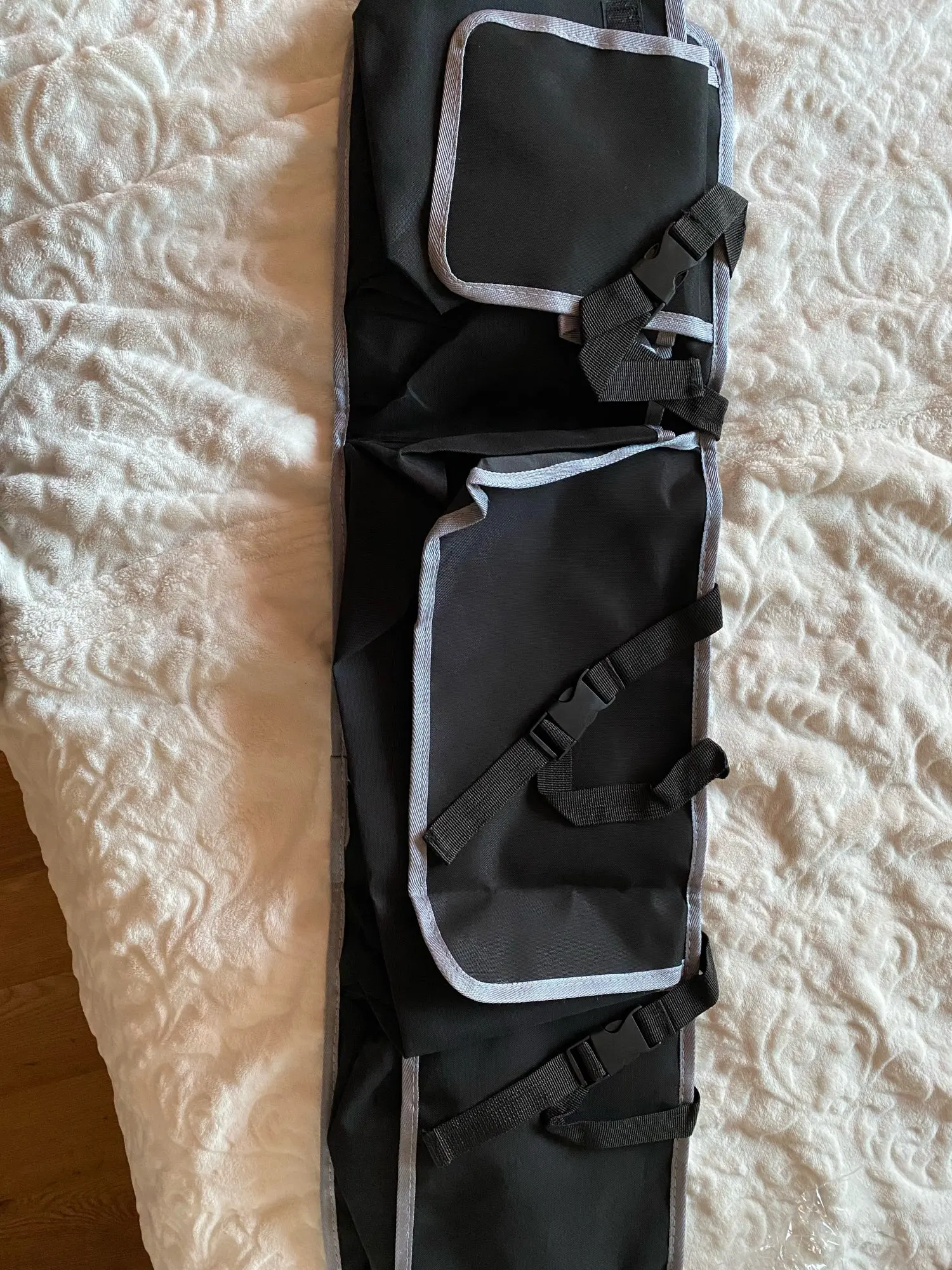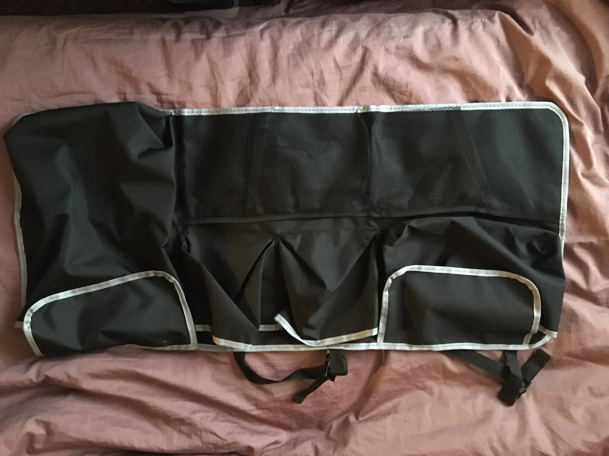 Удобная вещь. Три крепления для подголовников и с внутренней стороны липучки, очень хорошо держится. Выполнена качественно. Крепкие ровные швы, хороший прочный материал. Рекомендую для себя и для подарка другу)