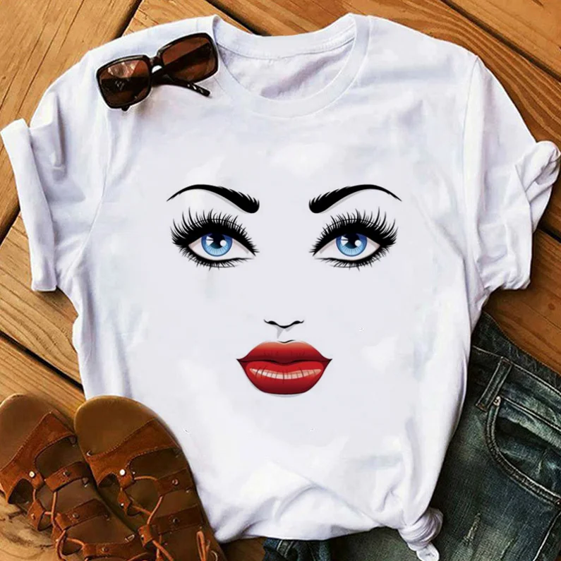 Женская футболка с принтом лица и макияжа, женская футболка в стиле...