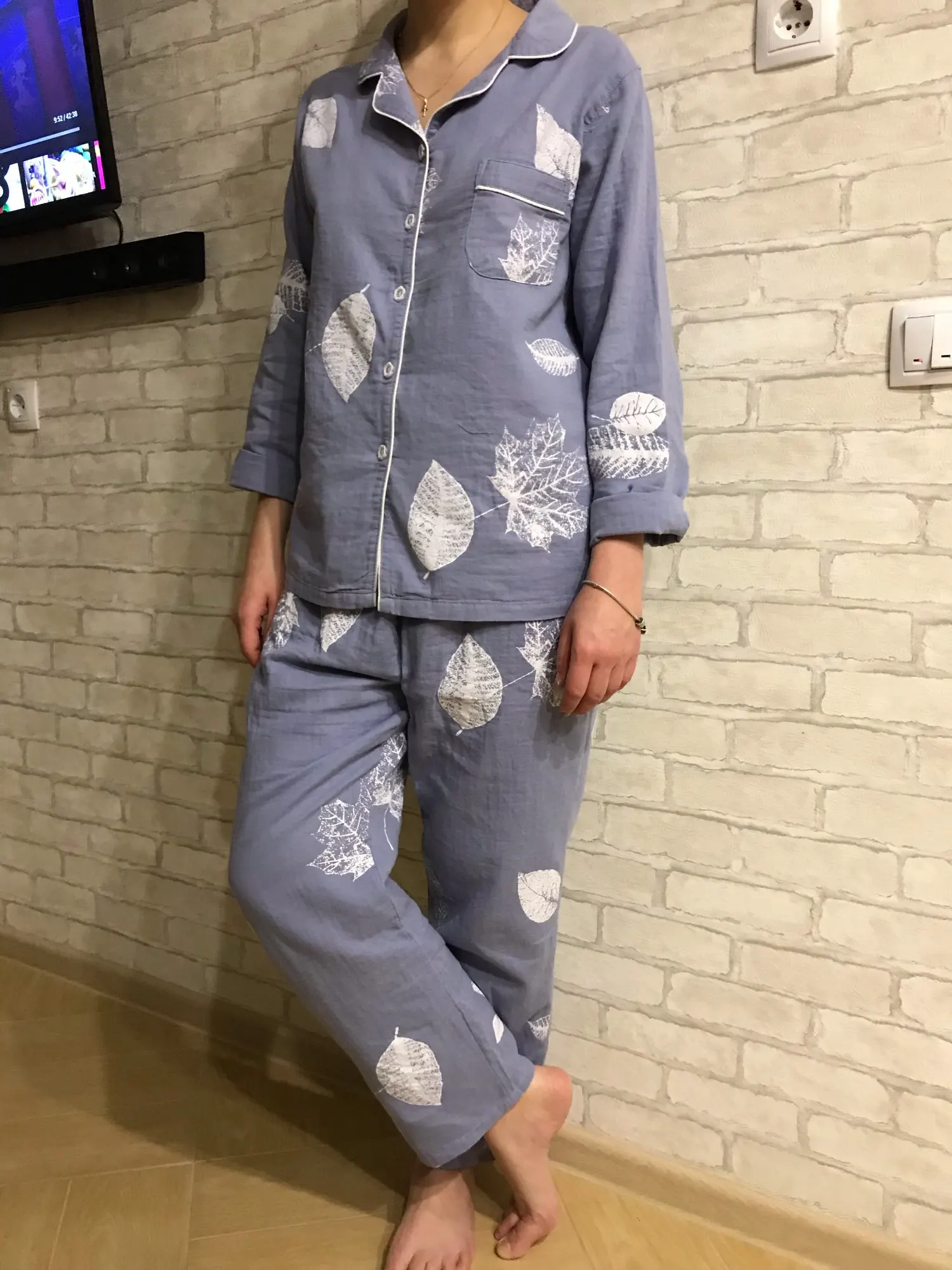 2022, кимоно, femme, кленовый лист, пижамные комплекты для женщин, 100% хлопок, марля, с длинным рукавом, повседневная одежда для сна, женские пижамы на осень, горячая распродажа