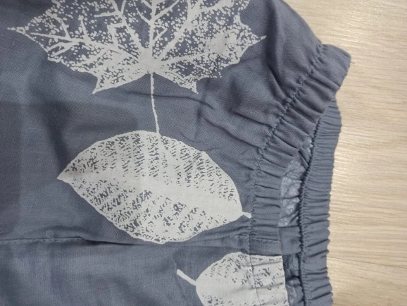 Заказа вторую. Почему то именно этот рисунок (голубой с листьями белыми) оказался короче, чем мы заказывали другого рисунка. Листья белые порезиневые.