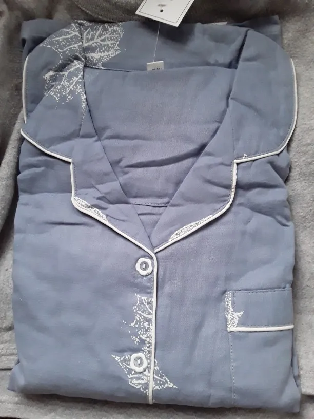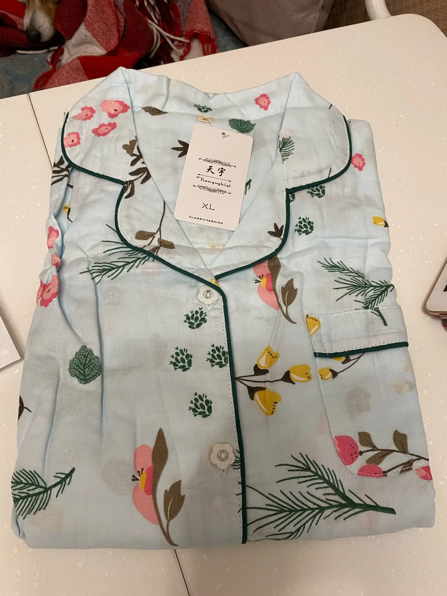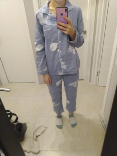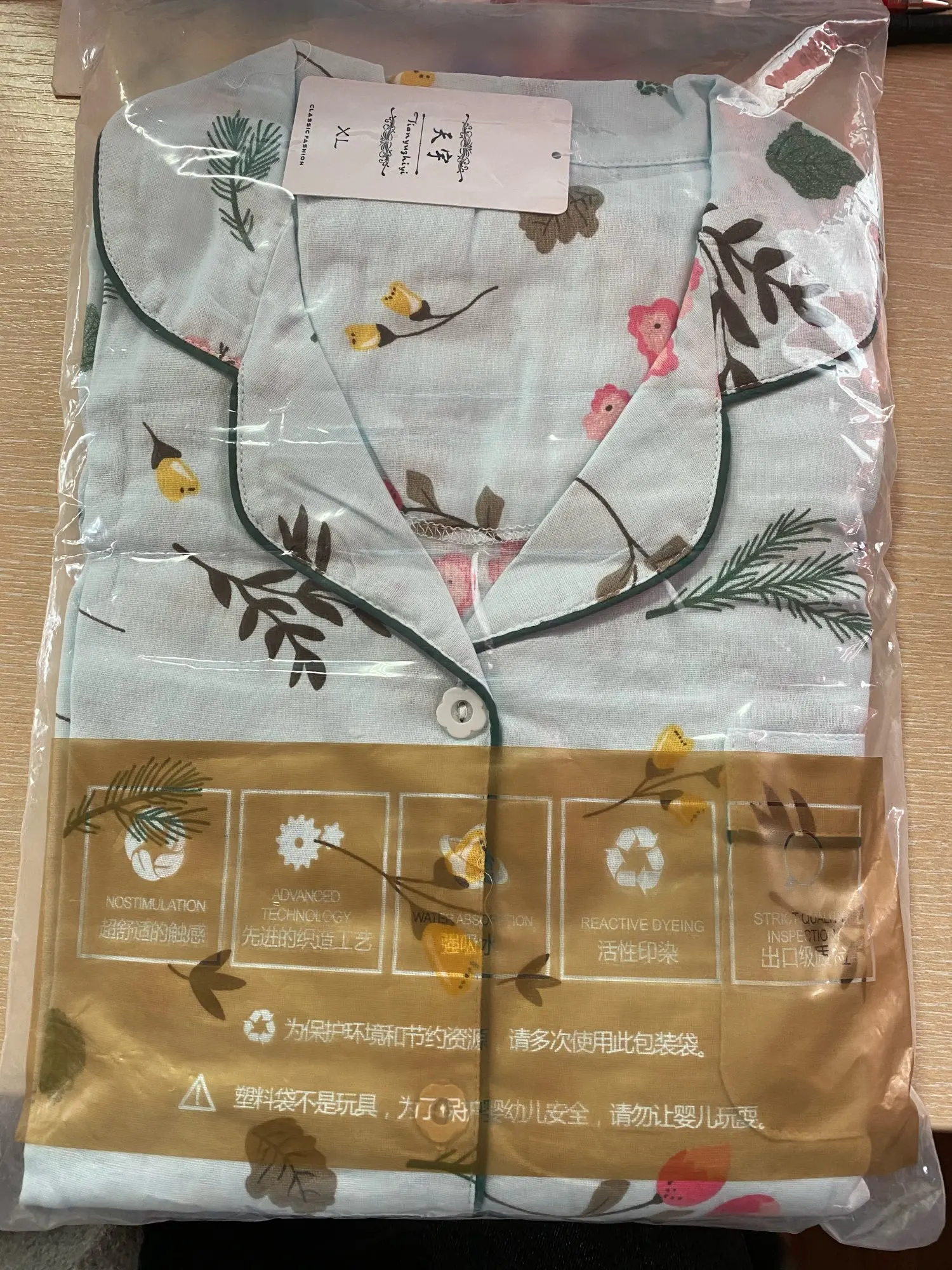 Пижама хлопковая, очень приятная и легка. Заказала 11.11, получила 25.12, так как товар был отправлен обратно продавцу. Очень стильная и Удобная. Я заказала размер XL на Российский размер 44-46 сидит свободно