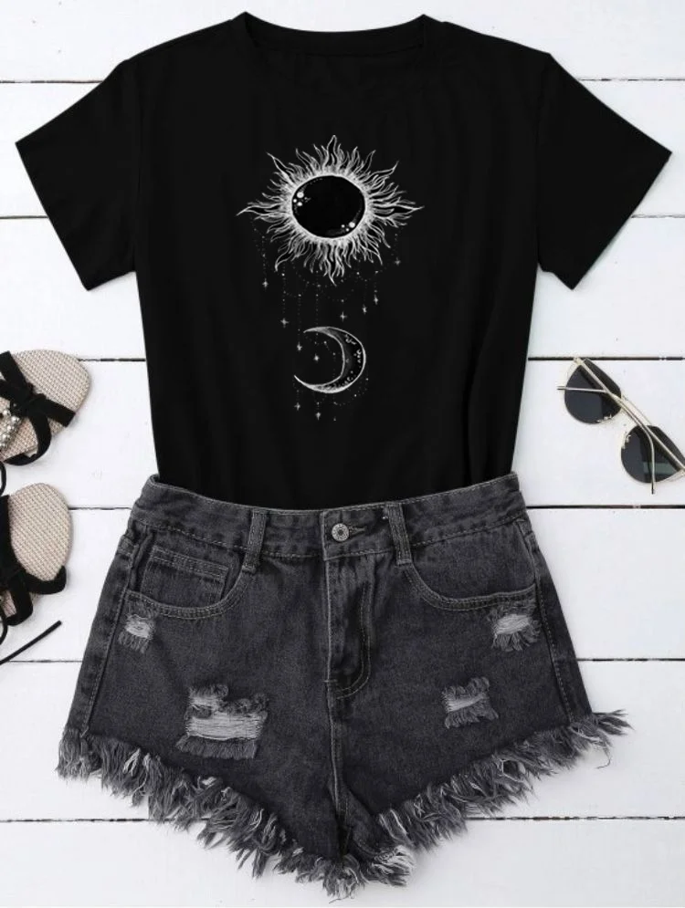 Винтажная модная женская футболка VIP HJN с принтом солнца, луны, з...
