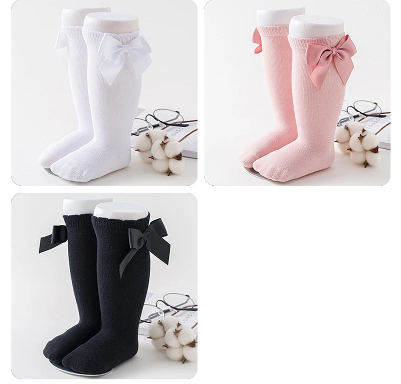 Милые детские носки с бантом, Хлопковые гольфы с бантом для маленьк...