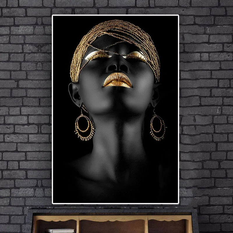 Абстрактная Золотая черная женщина, холст, картины, постеры и печать, картина маслом на холсте, настенное искусство для гостиной, Декор