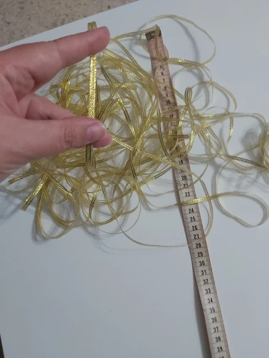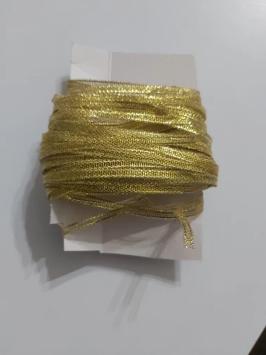 Me ha llegado de 4mm de ancho. Es una cinta preciosa para las manualidades navideñas, color dorado, brilla. Longitud 18.55 m (20 yardas = 18,29 m). Es genial, uso un trozo de cartón para guardar la cinta. Gracias vendedor, recomiendo 5⭐