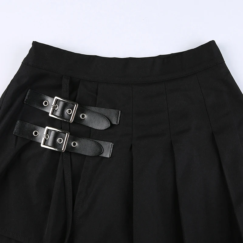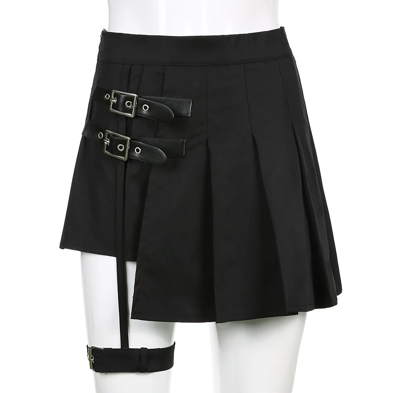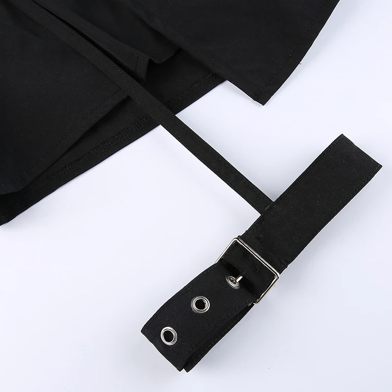 Пикантная Готическая Женская мини-юбка с высокой талией, с короткими лентами, трапециевидная, однотонная, для вечеринок