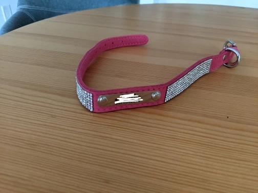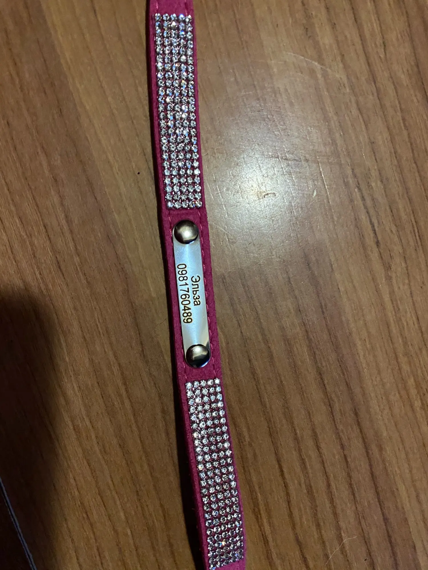 Прекрасный ошейник. Очень мягкий, удобный, все камешки на месте и прекрасно блестят. Отличная гравировка. Я очень довольна моей покупкой, в этом магазине. Однозначно рекомендую продавца. Доставка тоже была быстрой.