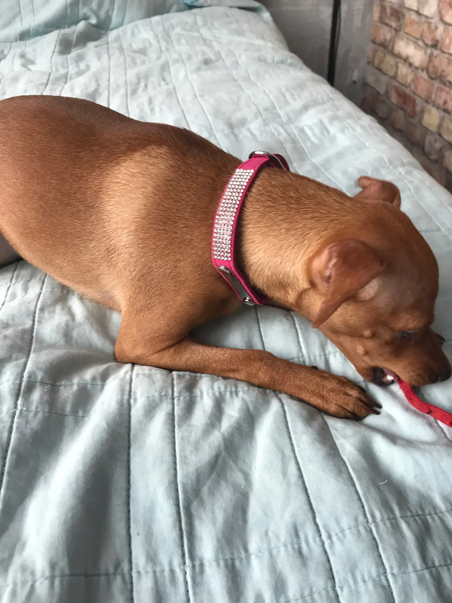 Просто супер красивый ошейник. Цвет соответствует фото. Бирка с кличкой и телефоном. Но на мини Йорка xs лучше заказать. S большеват.