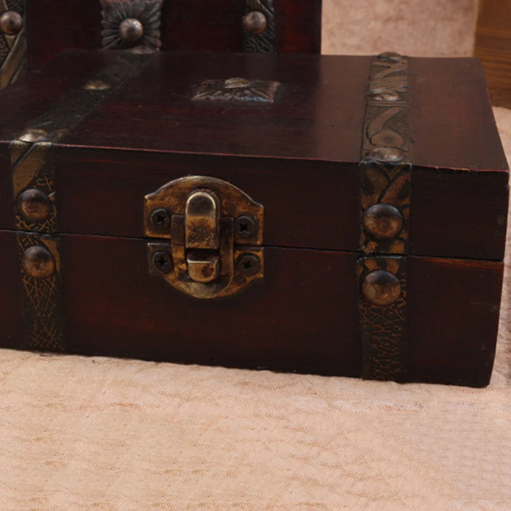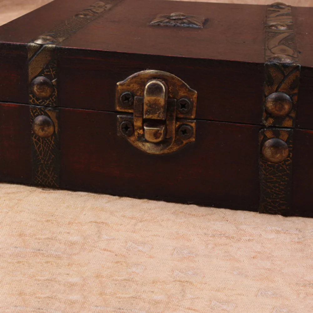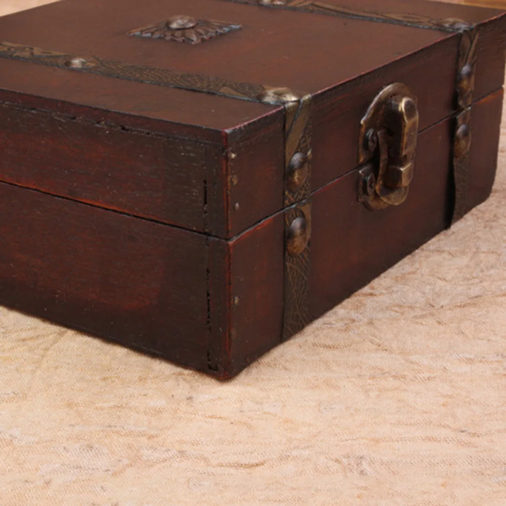 Деревянный шкатулка для украшений в стиле ретро, контейнер для хранения мелочей, органайзер в стиле ретро, шкатулка большой вместимости с замком