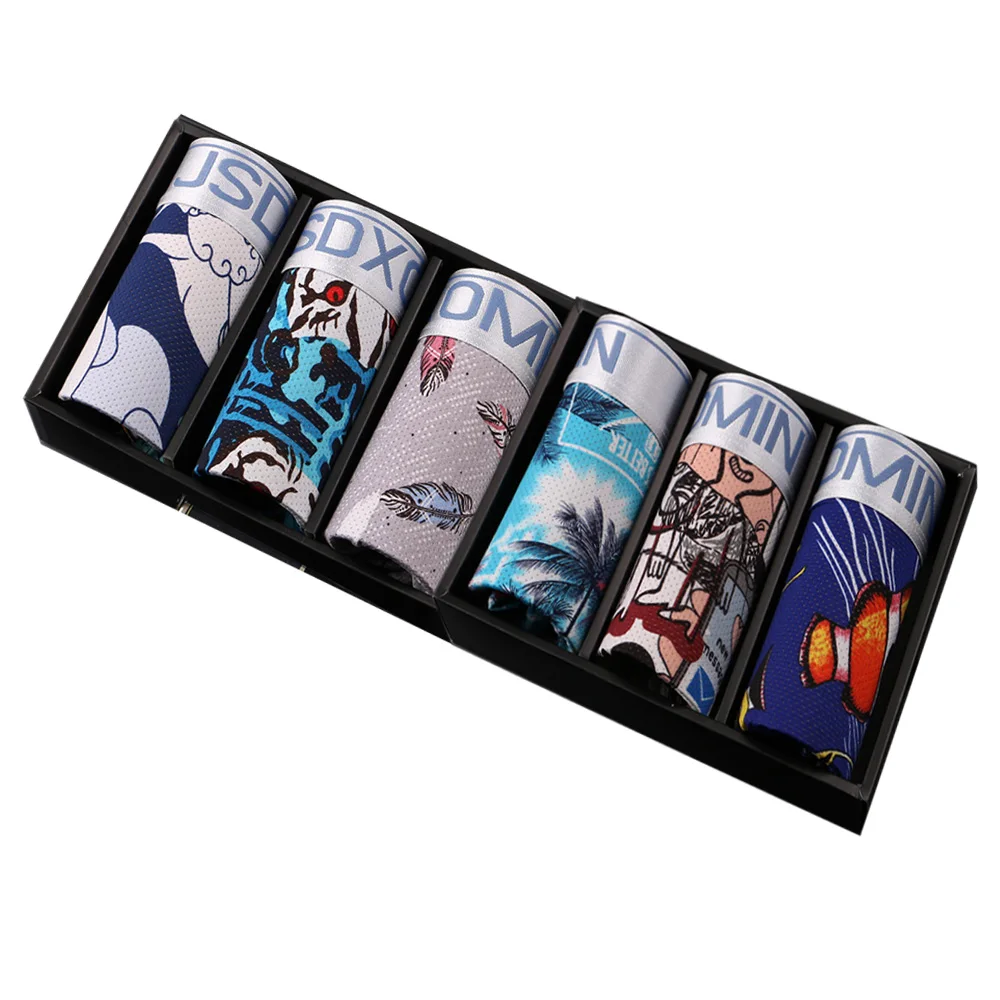 6 шт.лот, новые сетчатые мужские трусы-боксеры из ледяного шелка, мужские короткие трусы-боксеры с u-образной выпуклой сумкой, мужские трусы-боксеры
