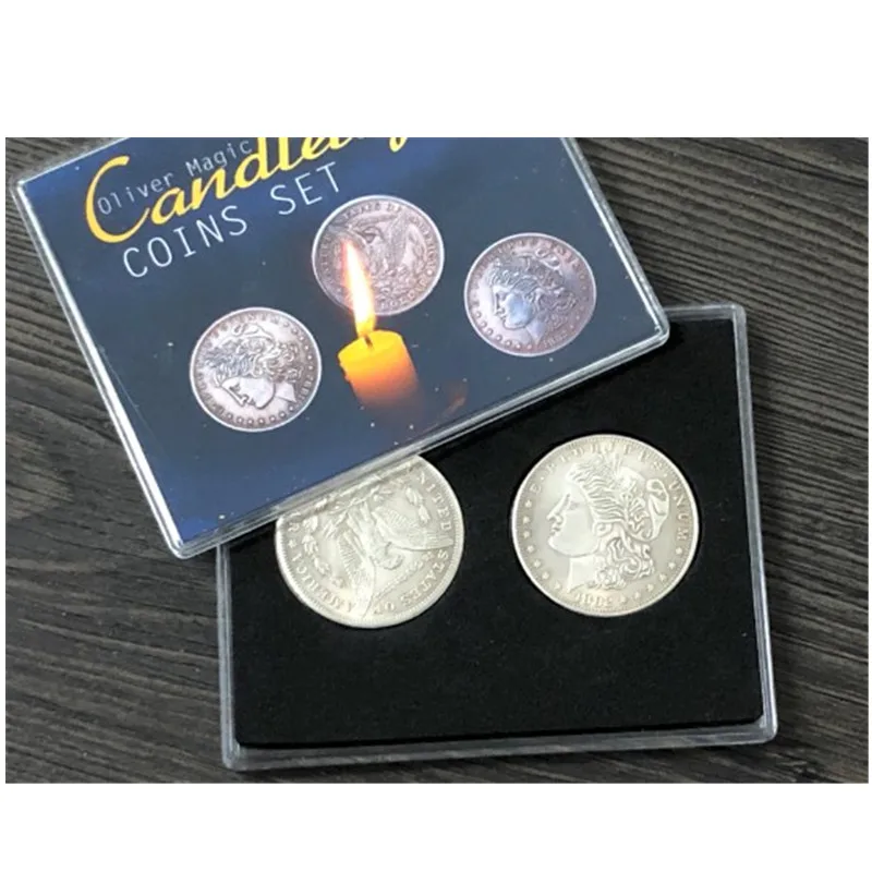 Набор волшебных монет Оливера с Подсвечниками, волшебные трюки, трюки, магические монеты крупным планом, сквозь стол, иллюзии, магия, реквизит