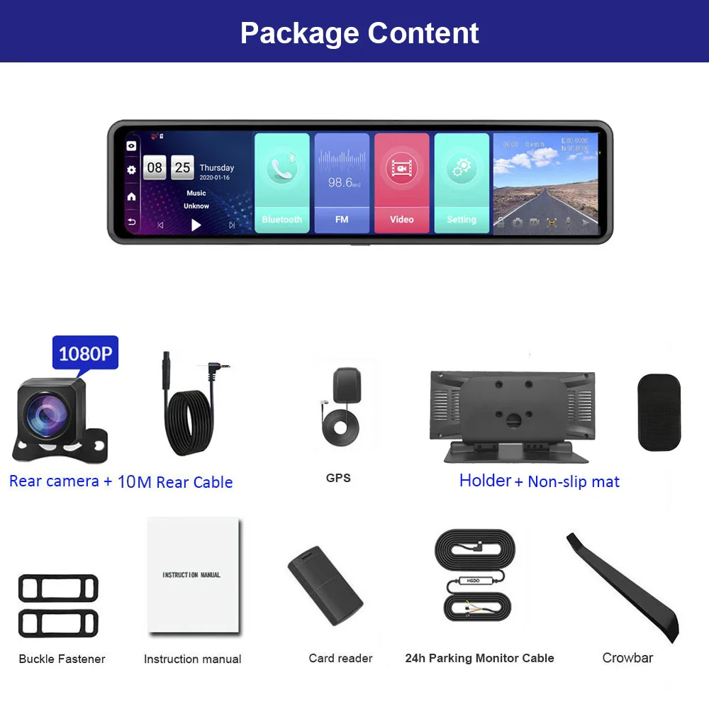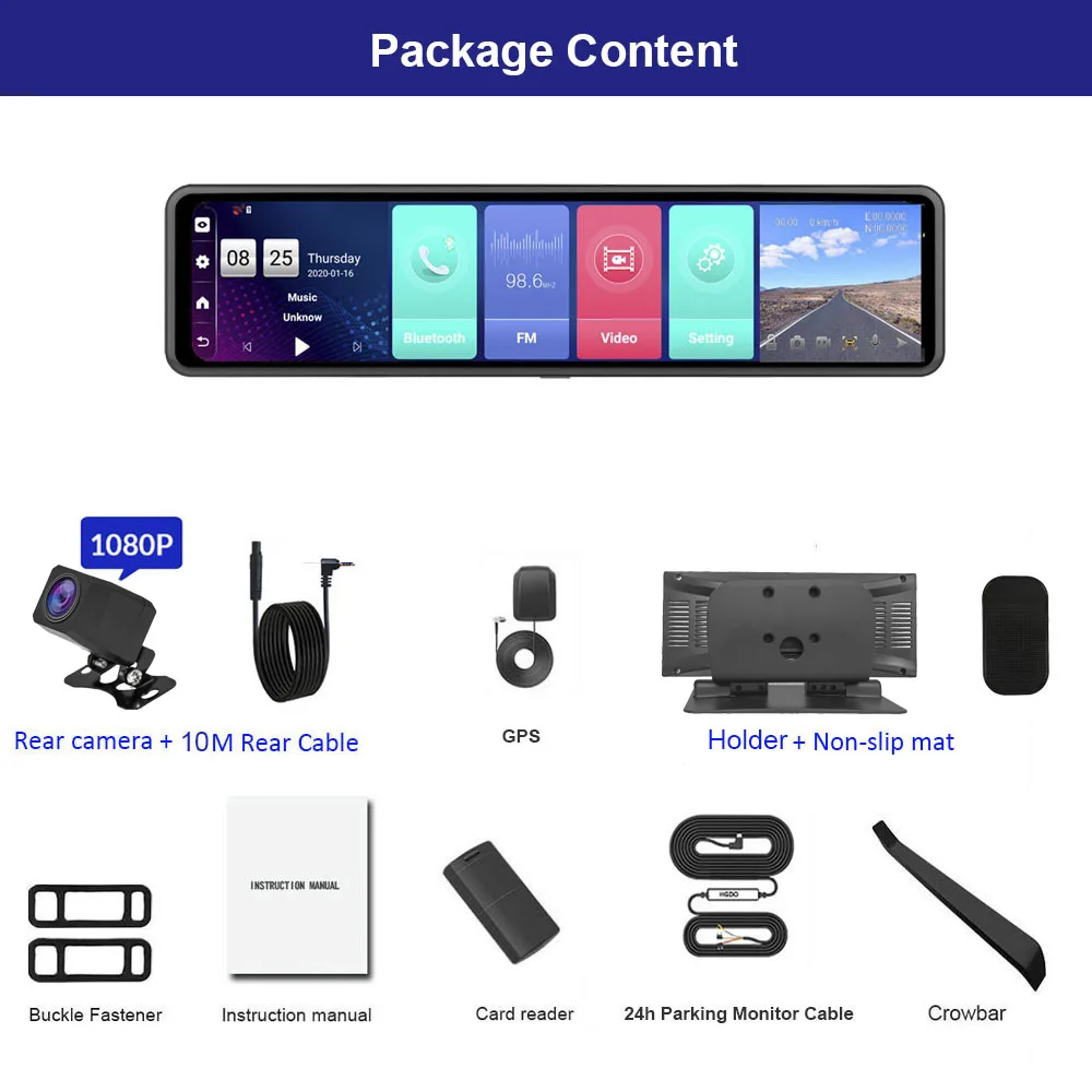 Автомобильный видеорегистратор HGDO 2020, 12 дюймов, GPS, 4G, Android 8,1, ADAS, FHD 1080P, видеорегистратор с двумя объективами, Автомобильный видеорегистратор, дистанционное управление, 2G + 32G