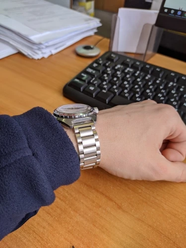 Продавец отправил товар быстро. Получил через 18 дней после оплаты товара. Я считаю, что это это супер быстро. Ремешек отлично выглядит- мне подошел по цвету идеально. На вес- тяжеленький. Выглядит супер. Небольшой минус- что с внешней стороны на не снимаемом звене браслета есть небольшая вмятина. В общем от меня продавцу 4,5 звезды. Фото прилагаю.