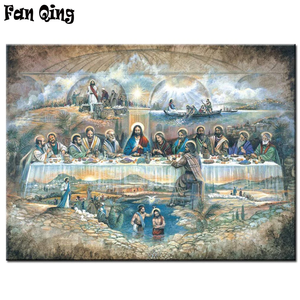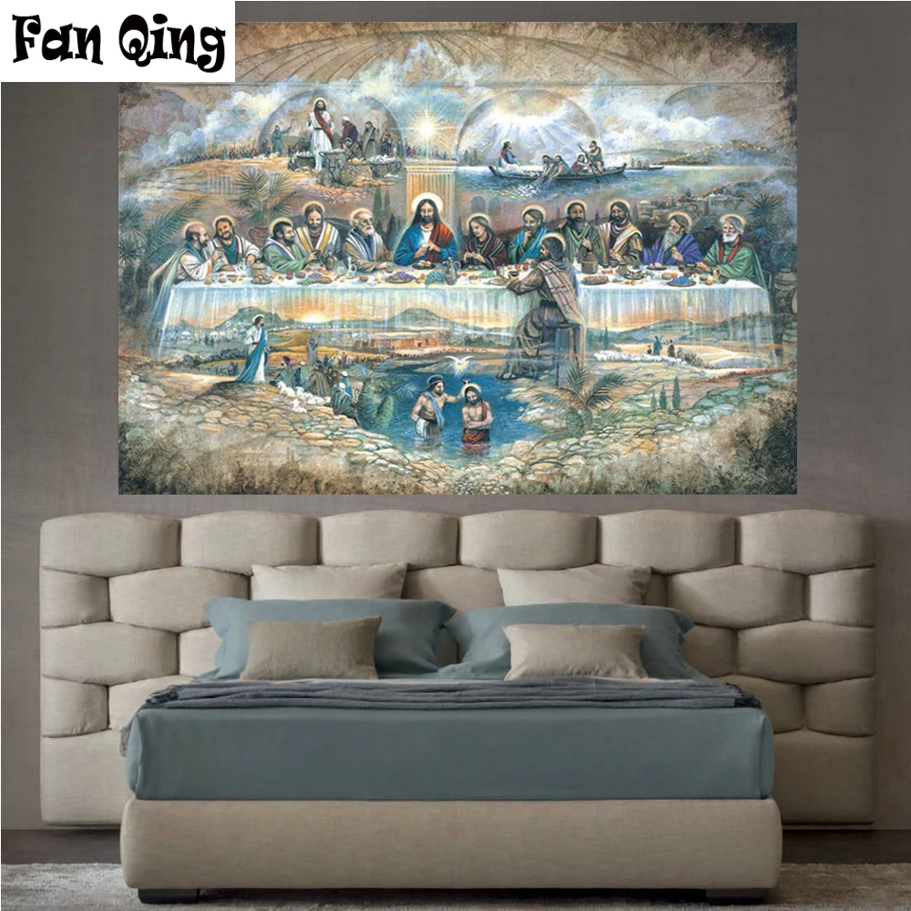 5d рукоделие, Алмазная мозаика, искусство Иисуса, тайная вечерняя Алмазная картина, полностью квадратная круглая дрель, алмазная вышивка, значок, пейзаж