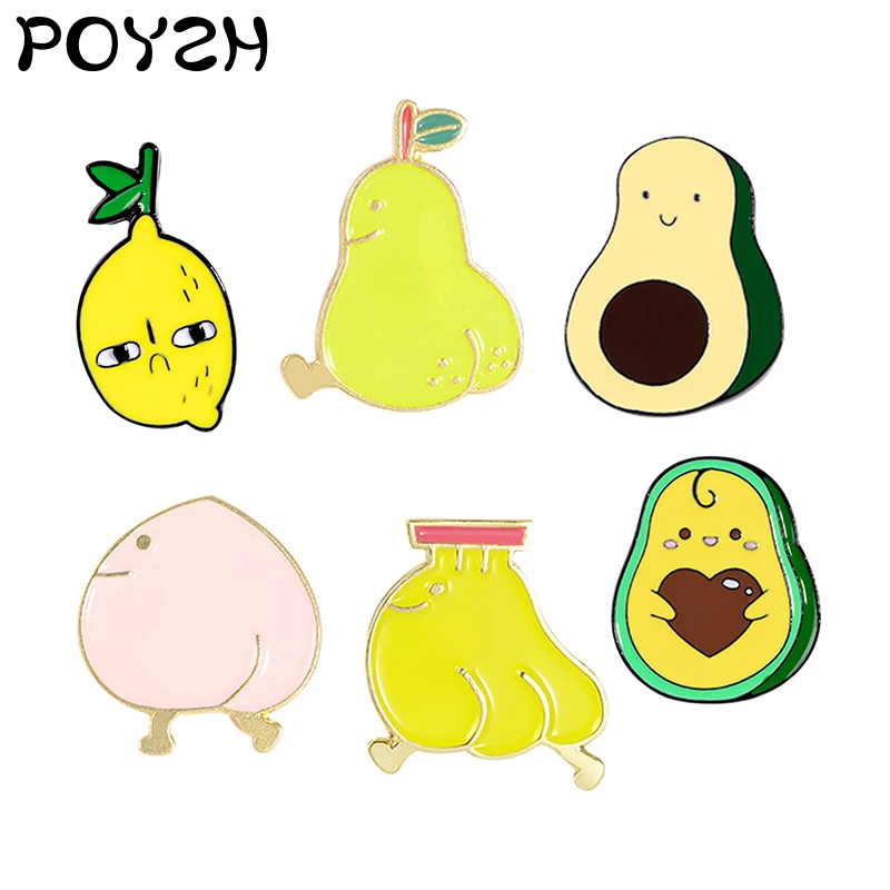 Желтая эмалированная брошь с фруктами, медовый персик, банан, груша, авокадо, лимон, любящее сердце, креативное Ювелирное Украшение, булавка для лацкана с фруктами, любящими друзей