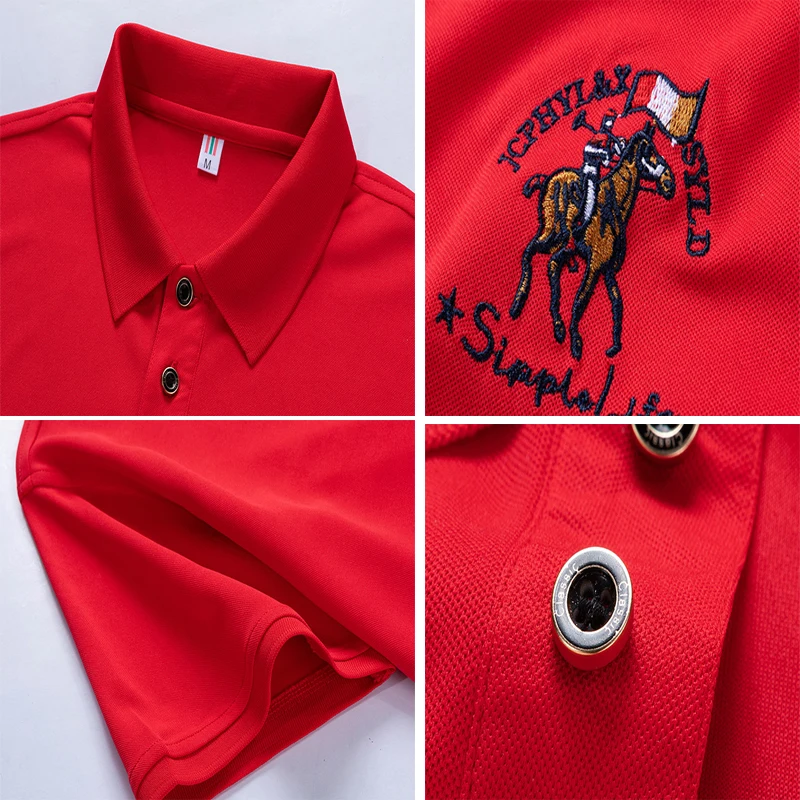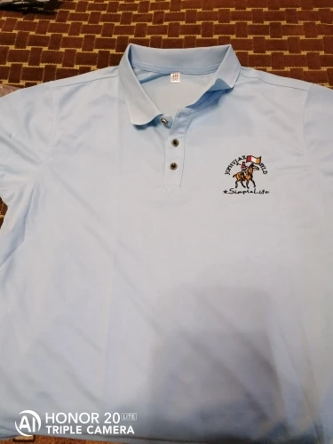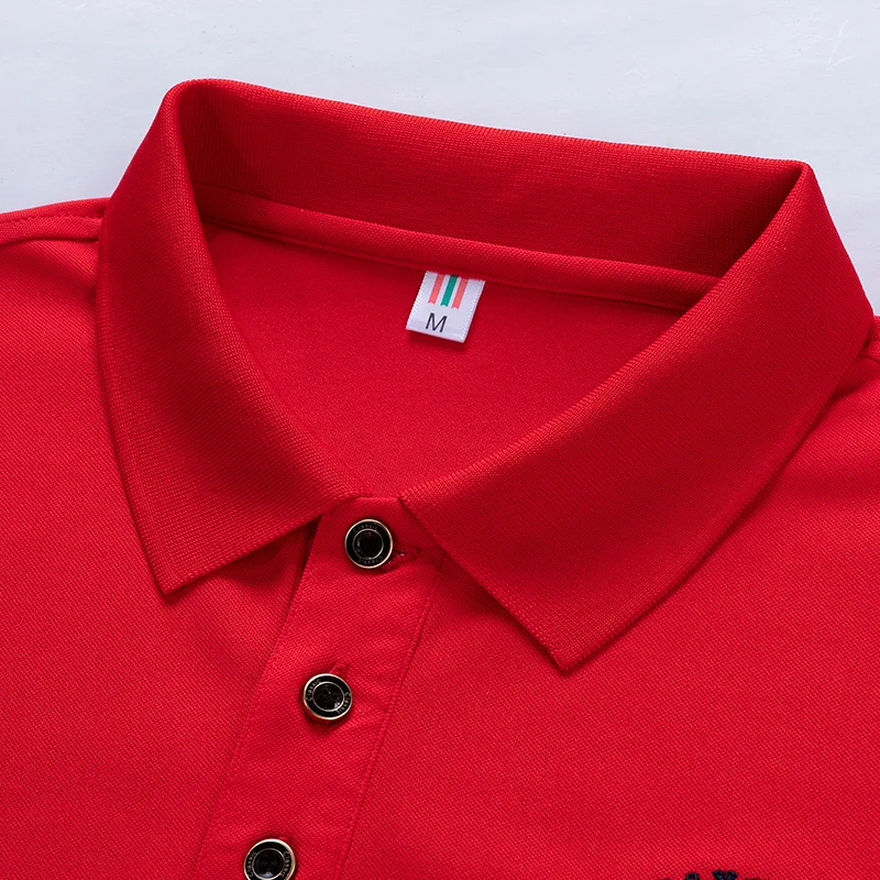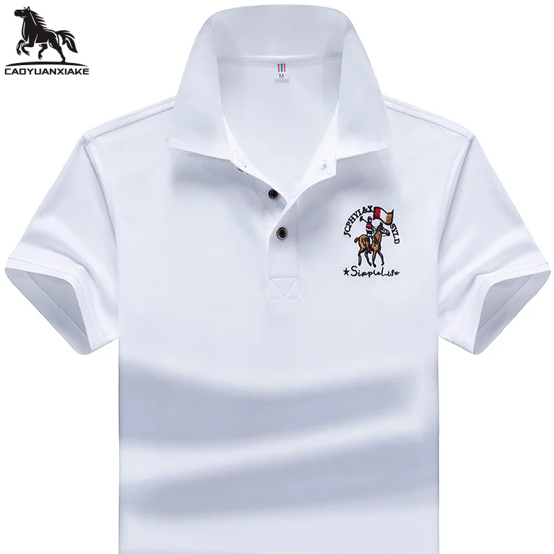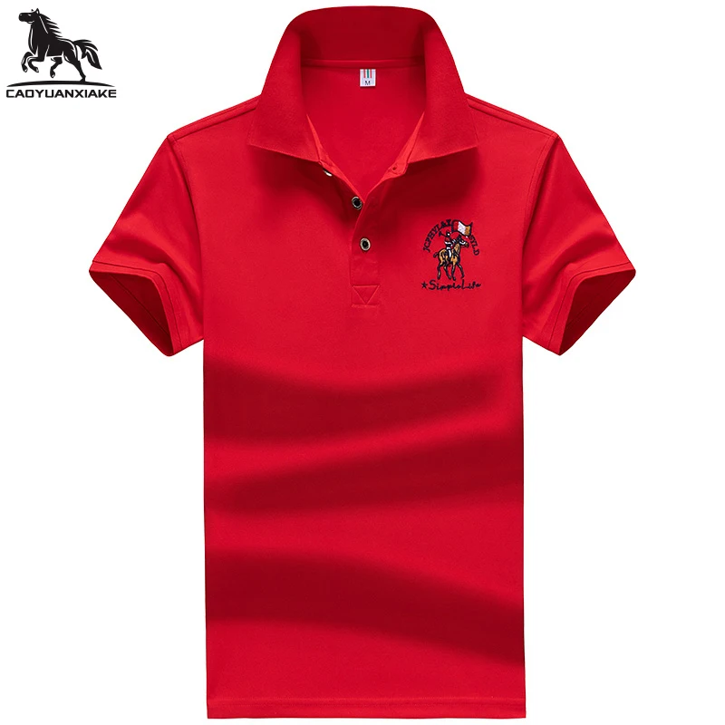 Рубашка-поло мужская с воротником, синтетика, короткий рукав, вышивка, повседневная, однотонная, 95%, лето 1731