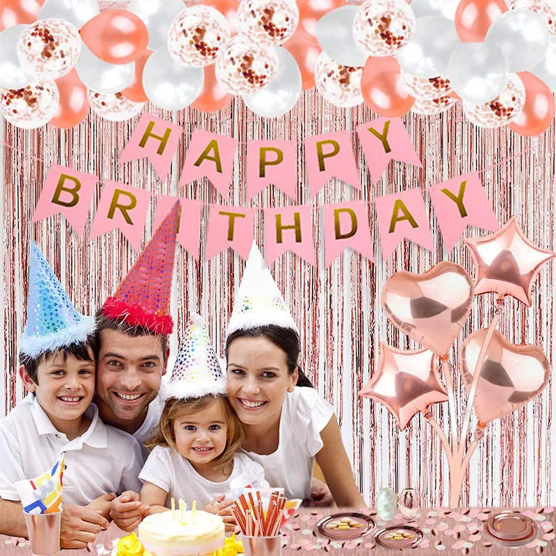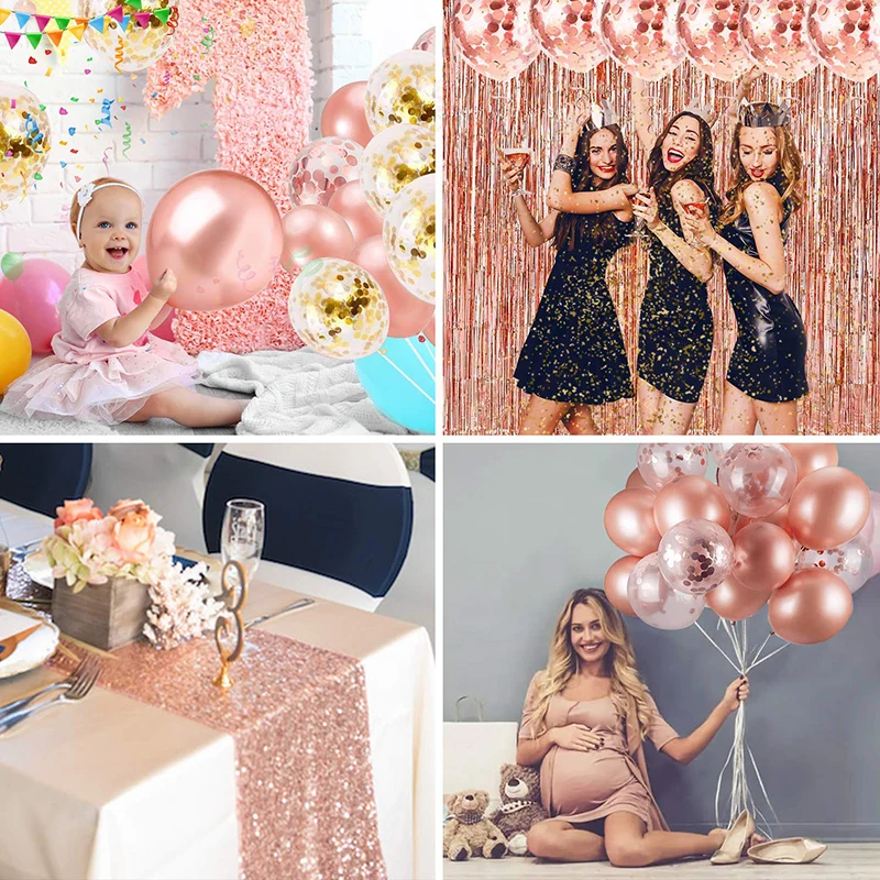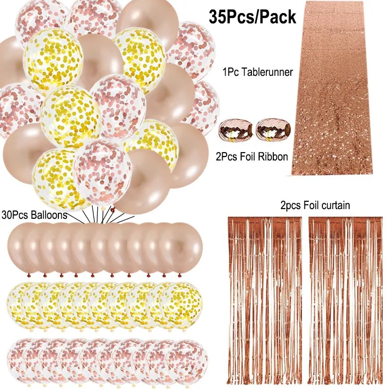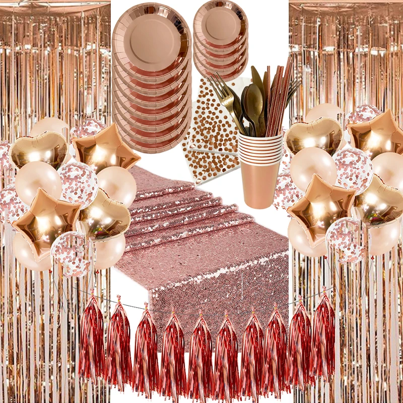 Розовое золото вечерние украшения набор воздушных шаров с кисточками Фольга бахрома шторы Настольная дорожка ленты для девичника Baby Shower Вечерние