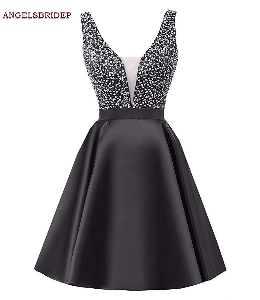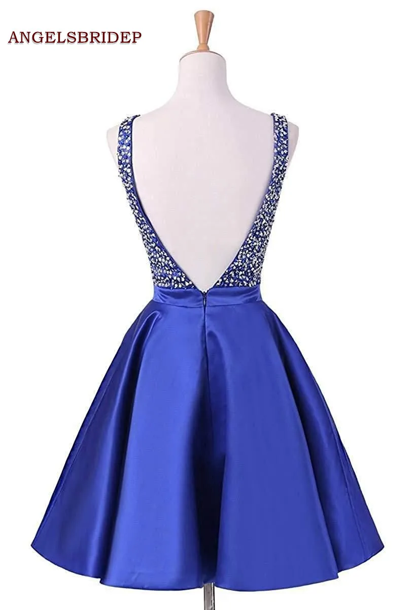 Женское Короткое атласное платье с открытой спиной, с V-образным вырезом