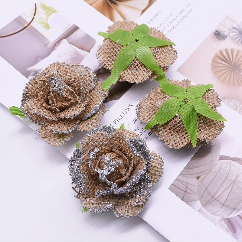 Искусственные цветы из джутовой мешковины, 5 шт., ручная работа, гессенская лента, бант, Винтаж, деревенский стиль, товары для дома и свадьбы, украшения для самодельного изготовления