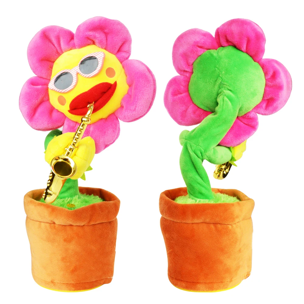 Саксофон музыкальный танцующий пение Электрический цветок игрушки мягкий плюшевый очаровательный цветок музыкальные забавные игрушки для детей