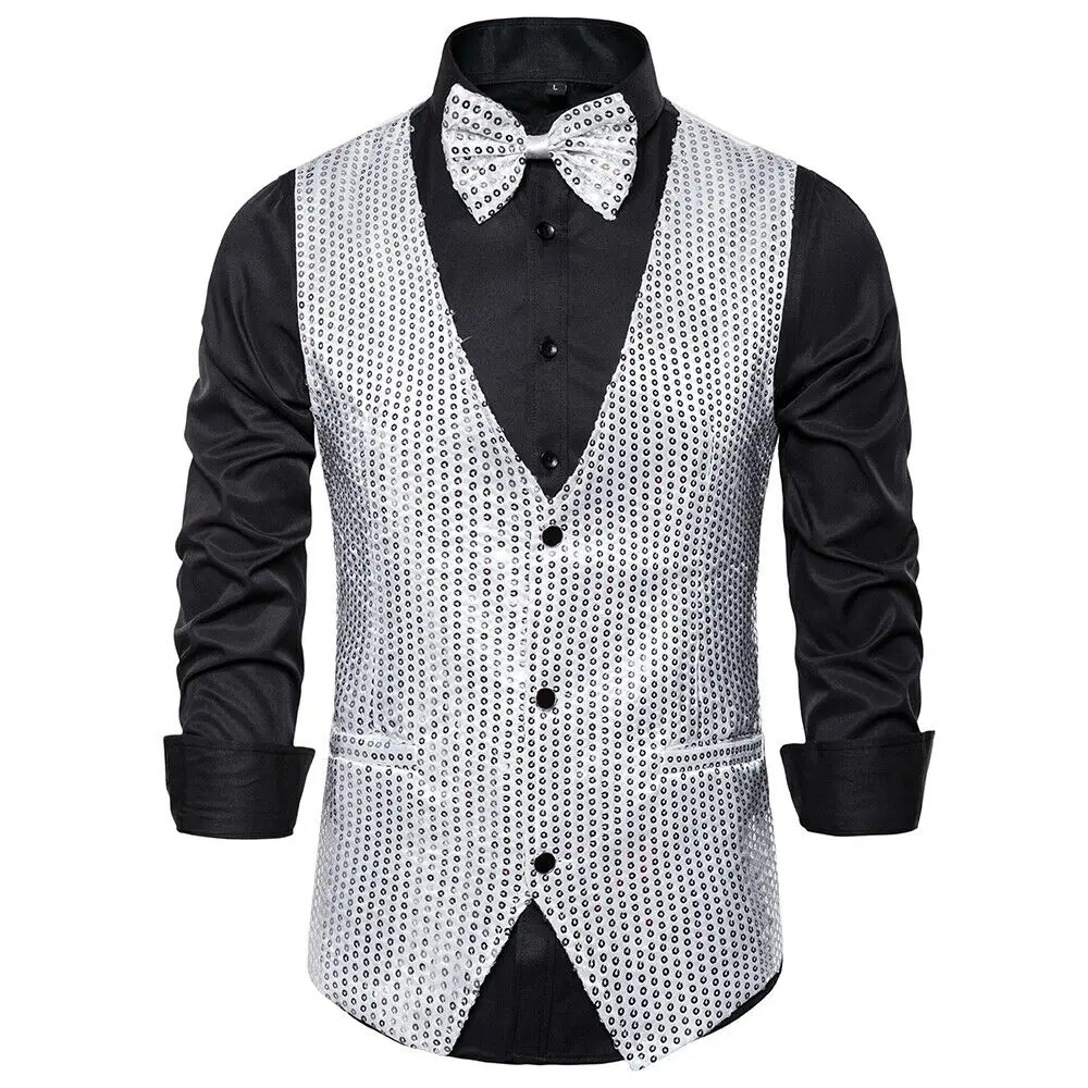 Мужской жилет с Блестящими Золотыми блестками и бантом, 6 стилей, синий, черный, серебристый костюм, Классические жилеты, 2 шт.