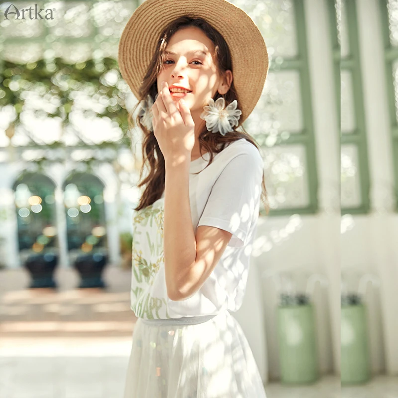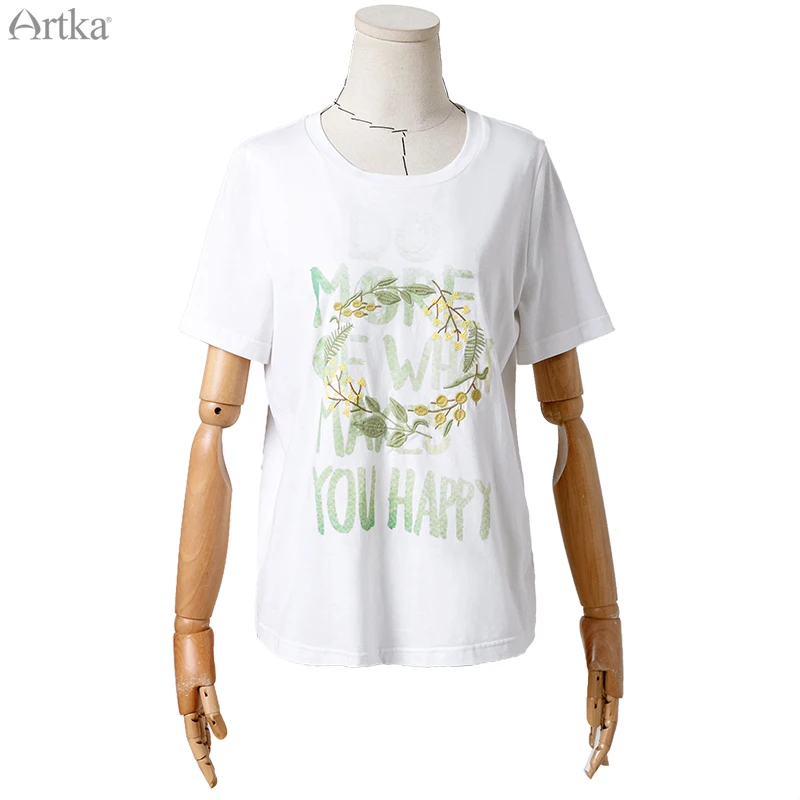 Женская футболка с вышивкой ARTKA, белая свободная футболка с коротким рукавом, 3 цвета, TA20003X, лето 2020