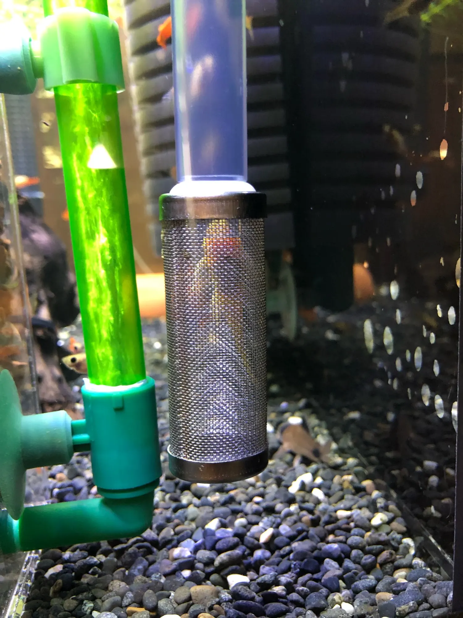 сетка мелкая в работе пока не тестировал, совсем мальков креветок засосет, если заборная трубка близко к грунту, чуть подросших пощадит), у меня в основе креветки вишня, потерь не видно, плодятся быстро, но раз 2-3 месяца при чистке внешнего фильтра, штук 10-20 креветок от туда вытаскиваю