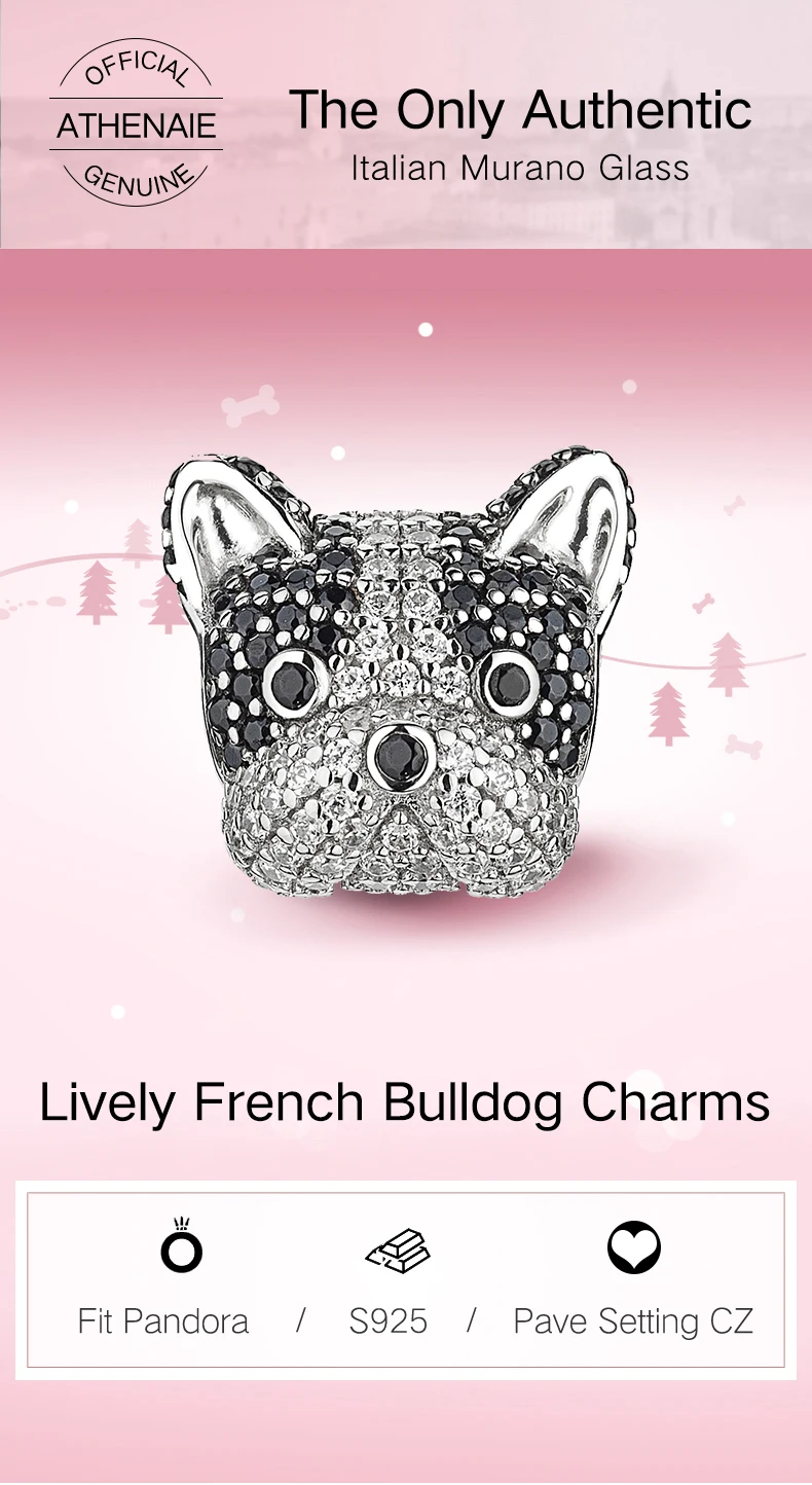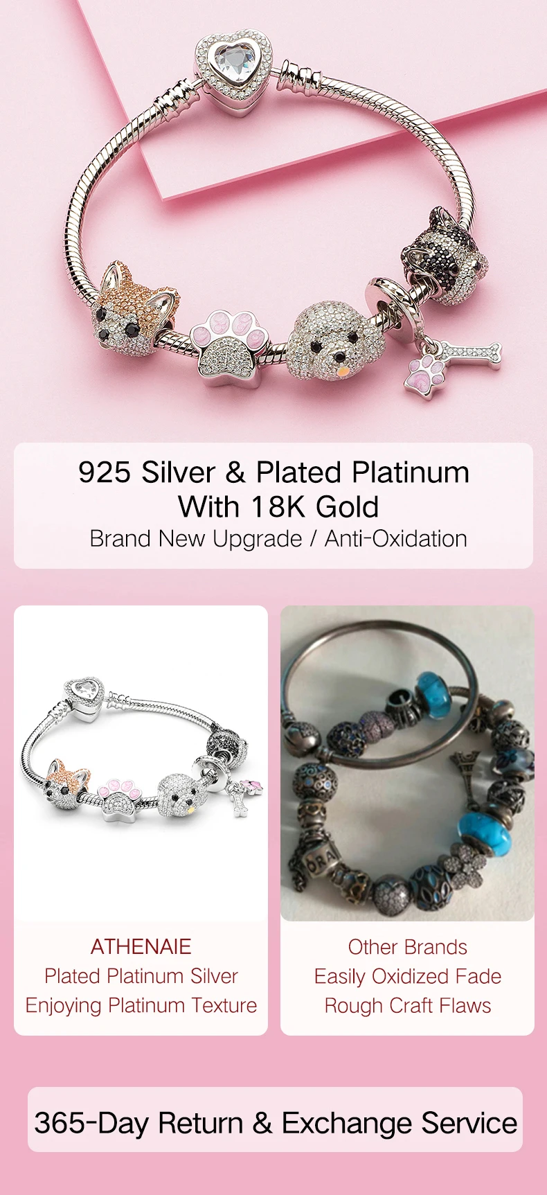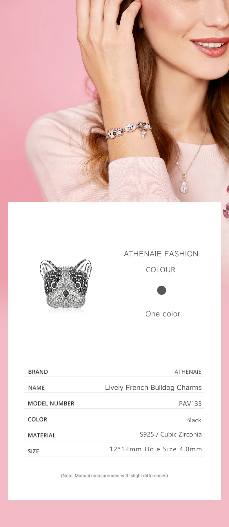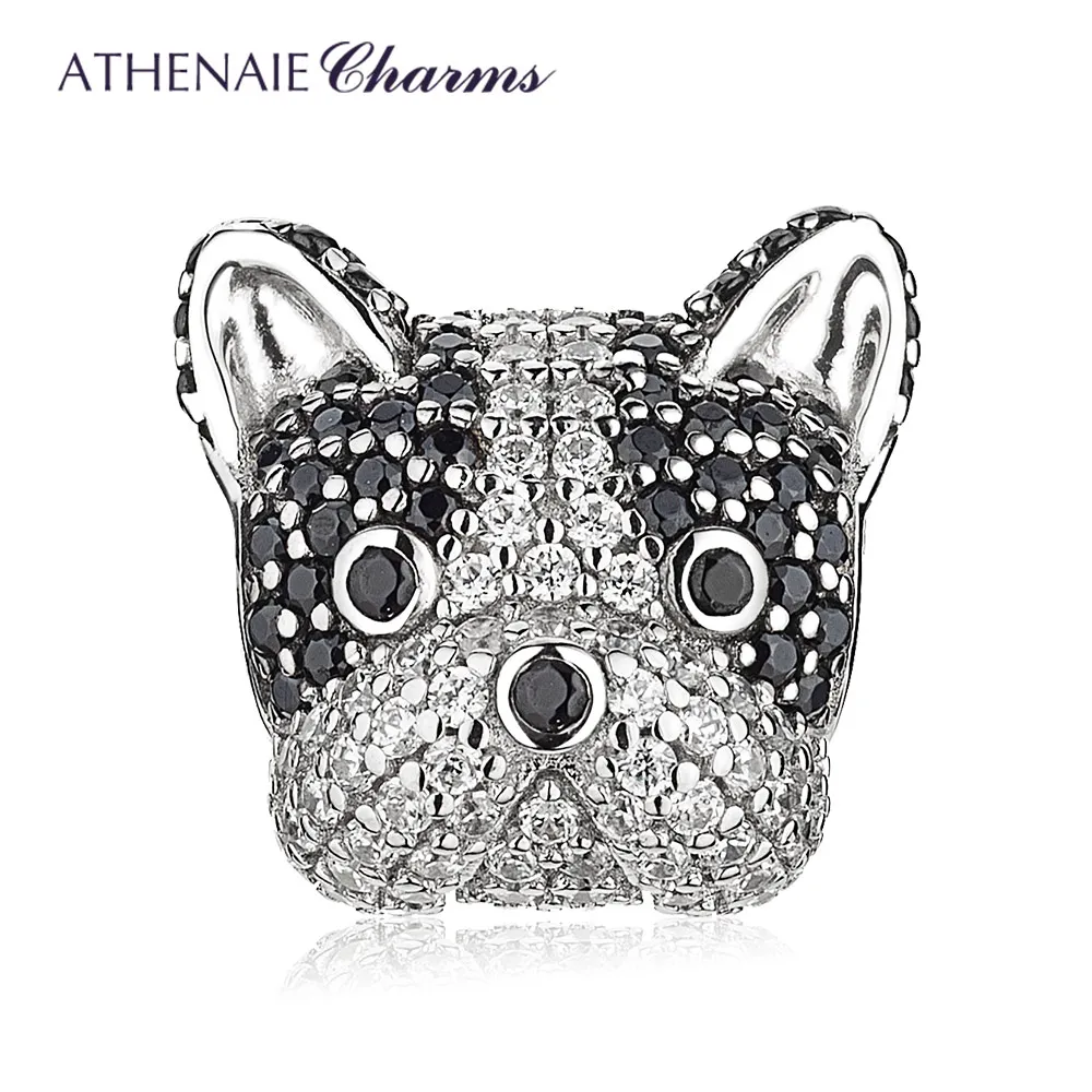 Оригинальный браслет ATHENAIE, 925 пробы, серебряный, смешанный CZ, милый Французский бульдог, щенок, собака, амулеты, животные, бусины для оригинального браслета