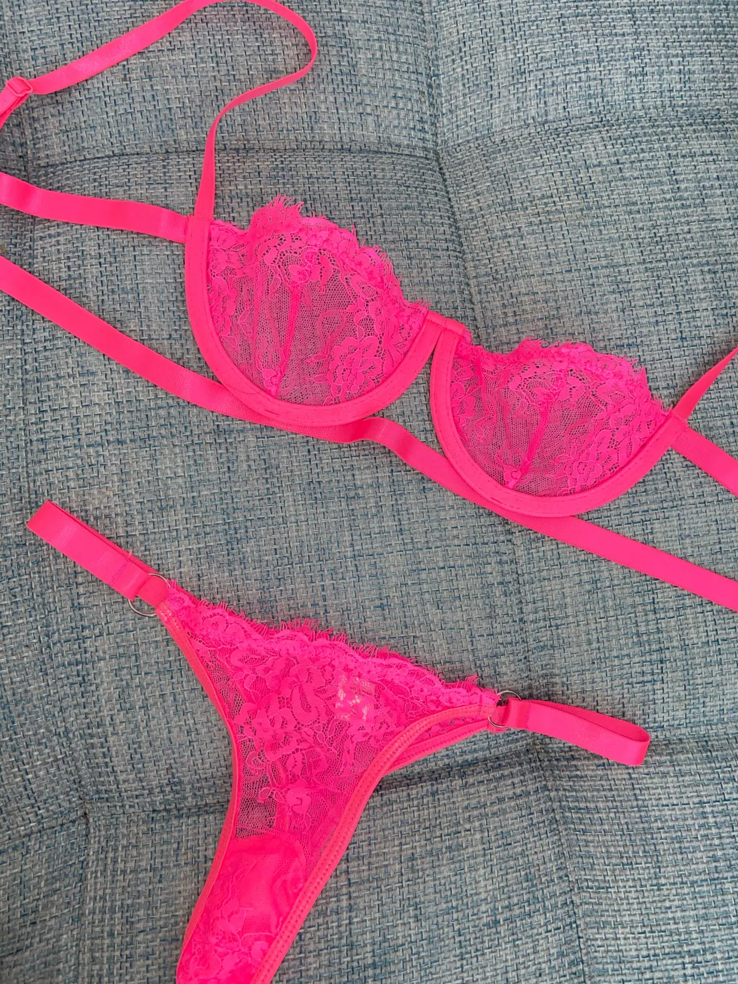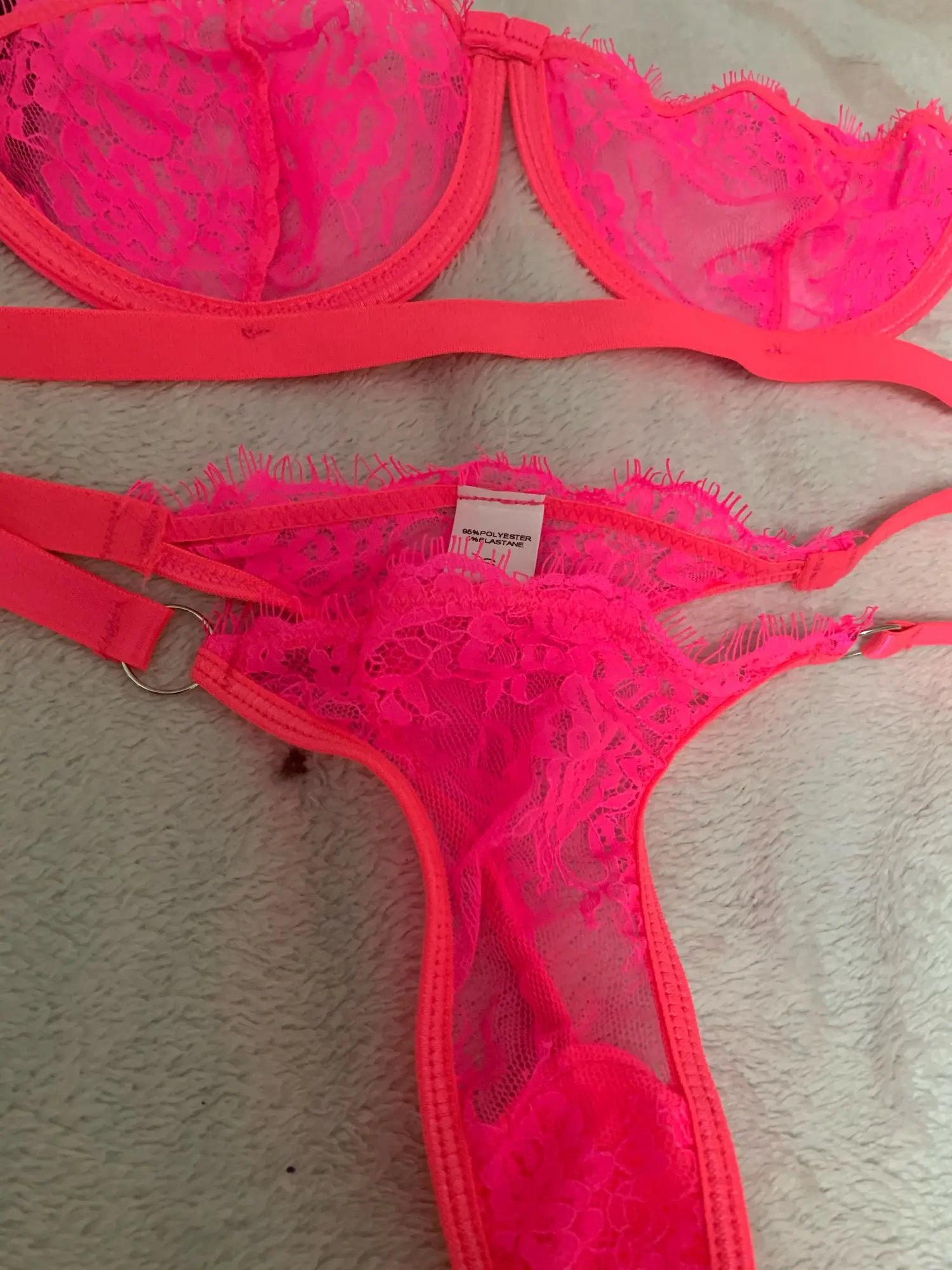 Комплект точно, как на фото) Нитки нигде не торчат, выполнен аккуратно, цвет соответствует описанию, кружево нежное. Отправили очень быстро, застрял на таможне, объединили с другими мелкими заказами