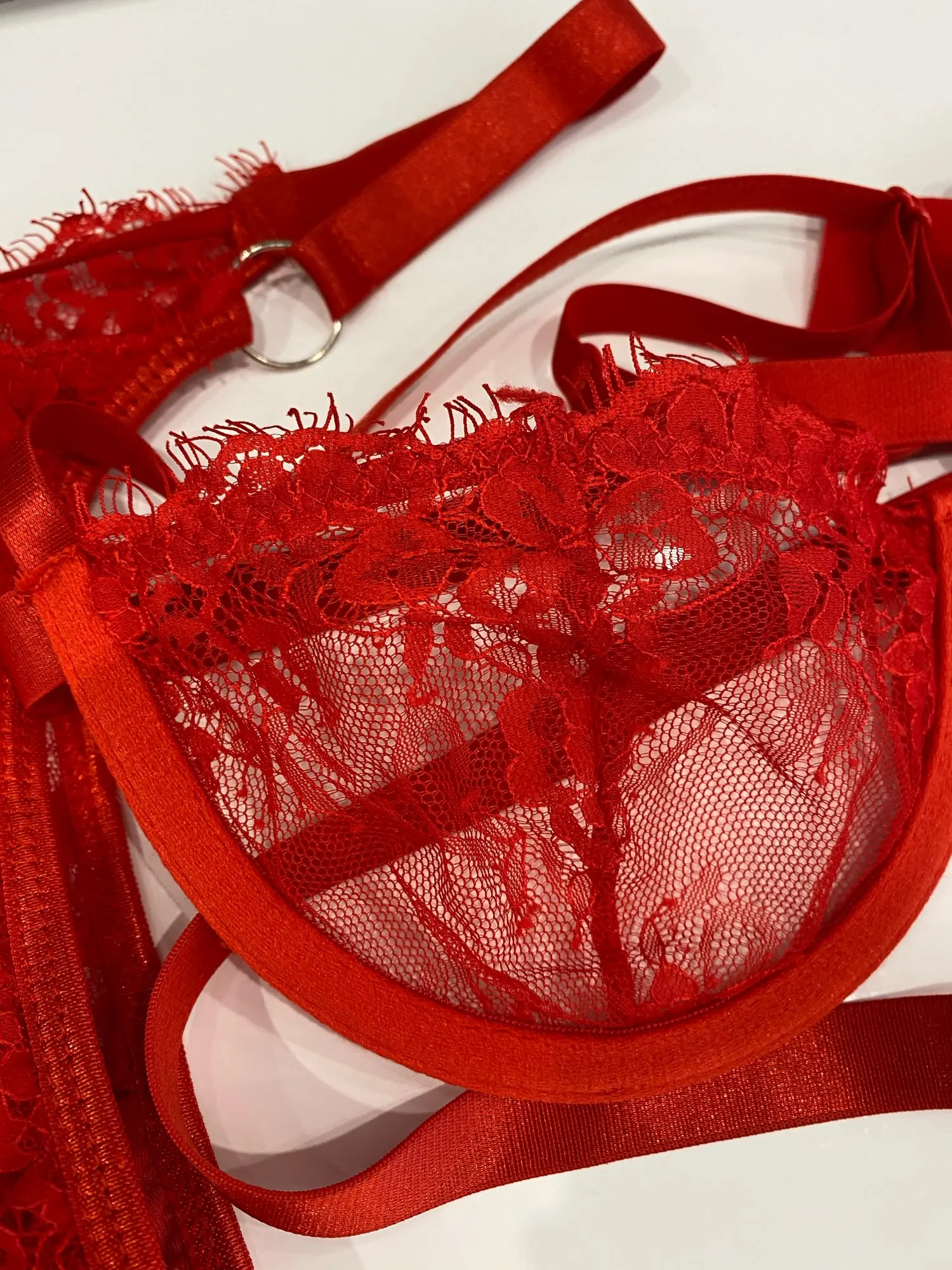 Алый комплект сплошной секс! Очень соблазнительно смотрится на теле. На параметры 81-61-92 подошёл хорошо. Все белые полученное при заказе, отличного качества, без каких-либо нареканий. Все очень понравилось! Доставка в срок, благодарю!