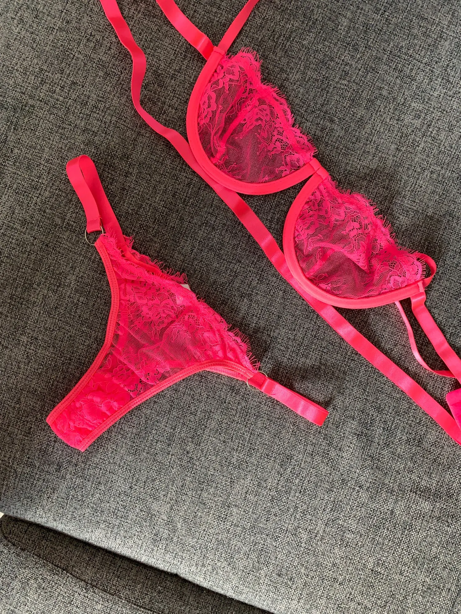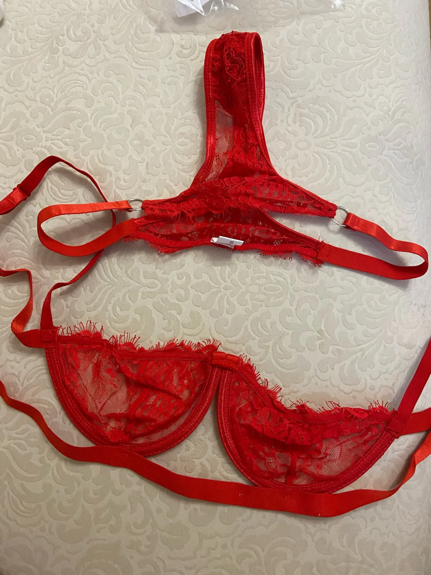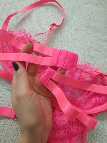 Белье очень красивое, качественное, нитки не торчат, вообщем все отлично) будет смотреться очень красиво на груди до 2 размера.