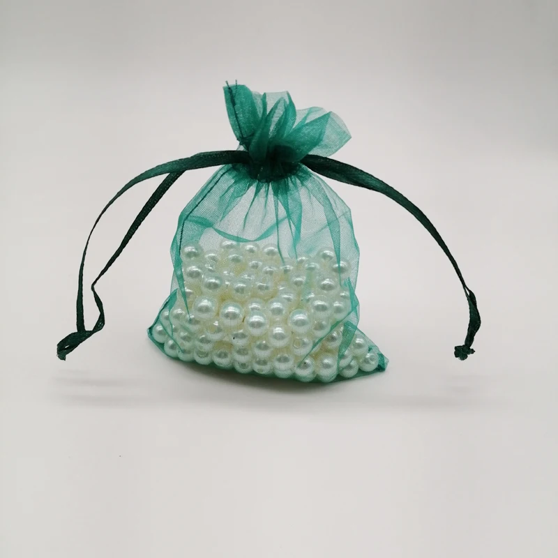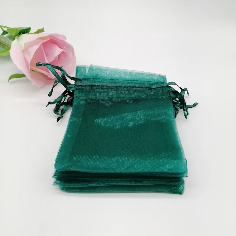 100 шт. темно-черно-зеленые подарочные пакеты для ювелирных изделий, упаковка, органза, сумка на шнурке, Свадебные/женские подарочные пакеты из органзы, демонстрационные пакеты