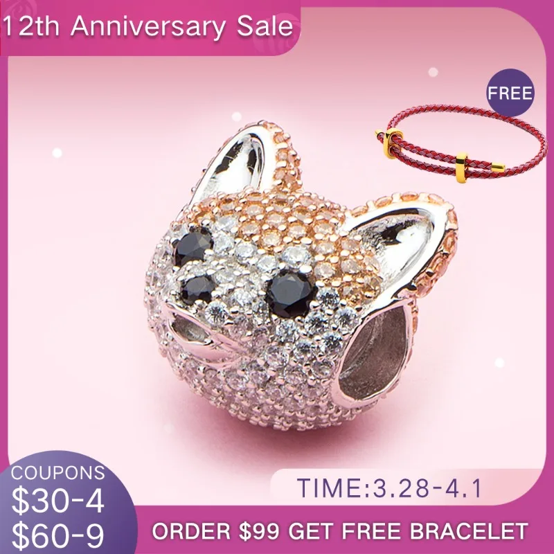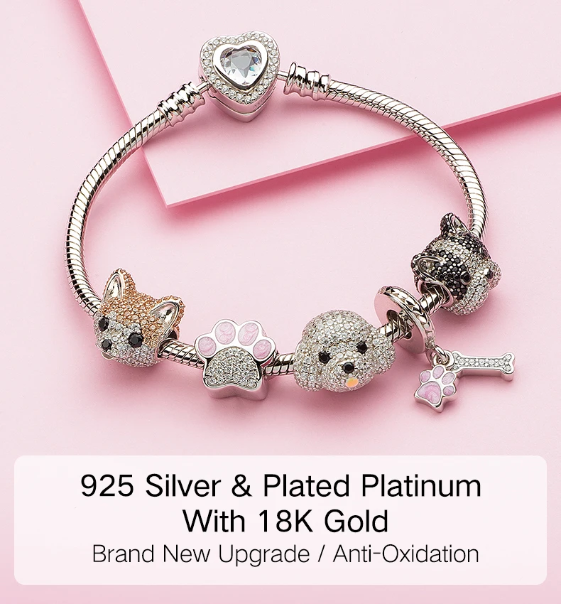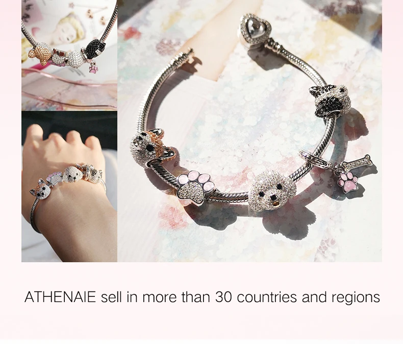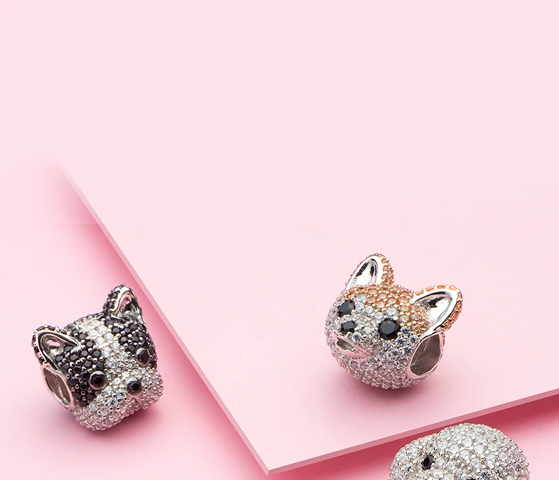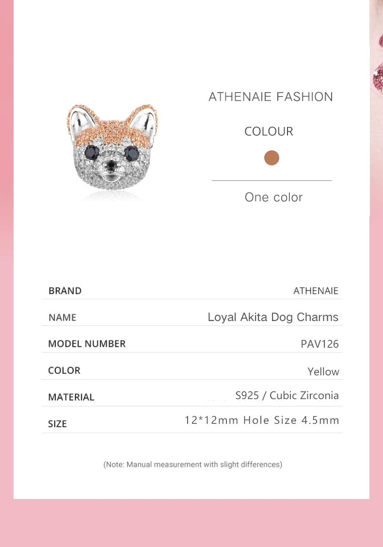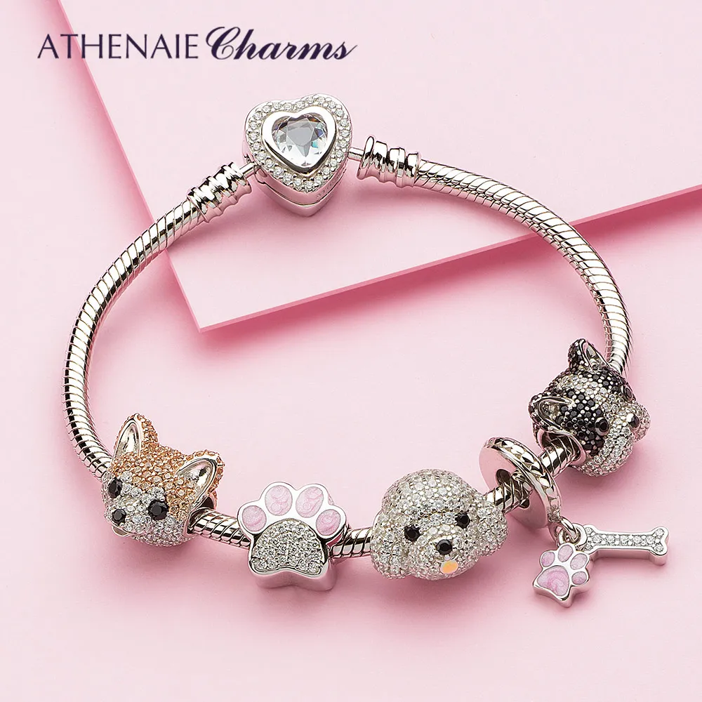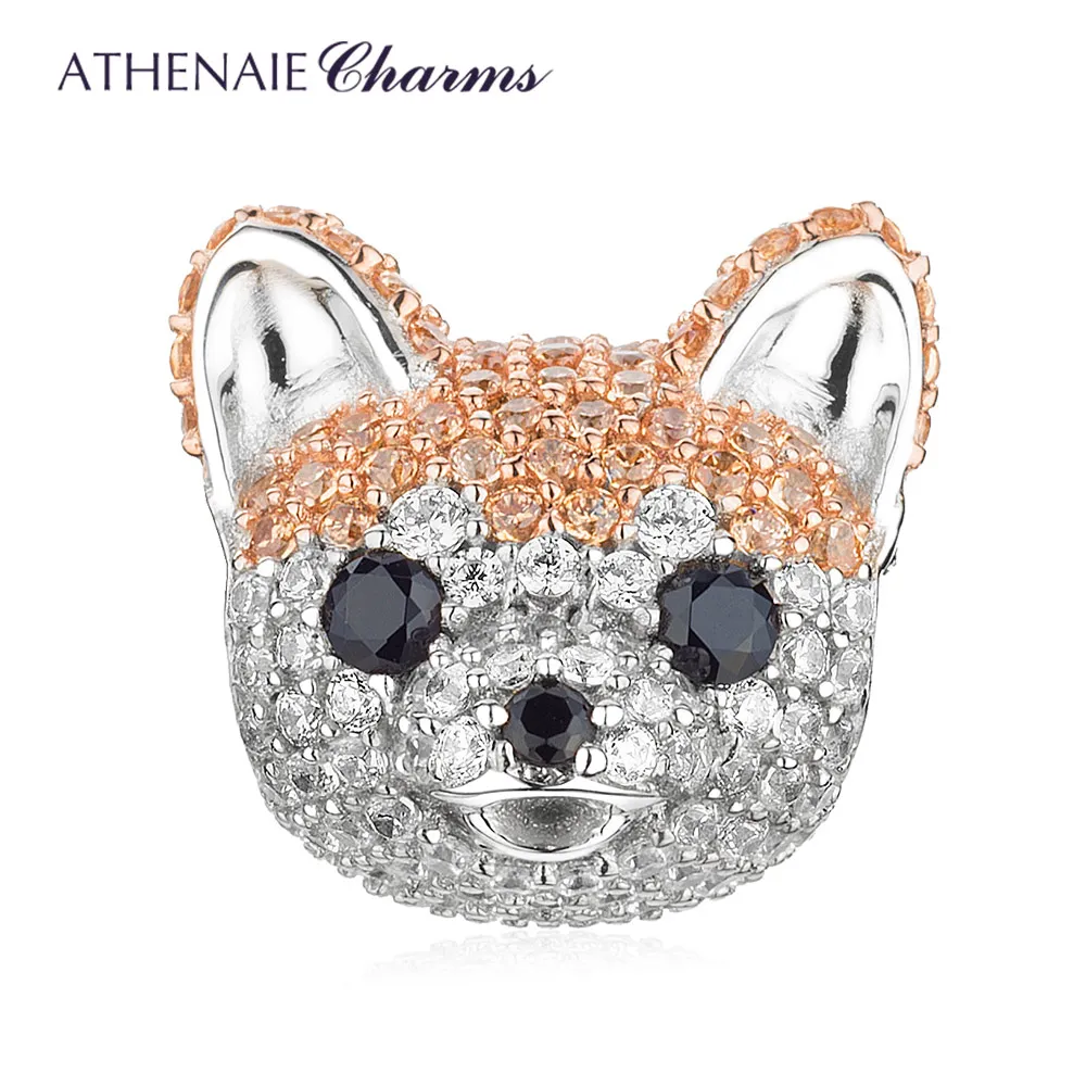 ATHENAIE 925 пробы, серебряные корги, животные, амулеты, смешанный CZ Желтый, милый Акита, щенок, шармы с собакой животным, бусы для браслета, ювелирное изделие