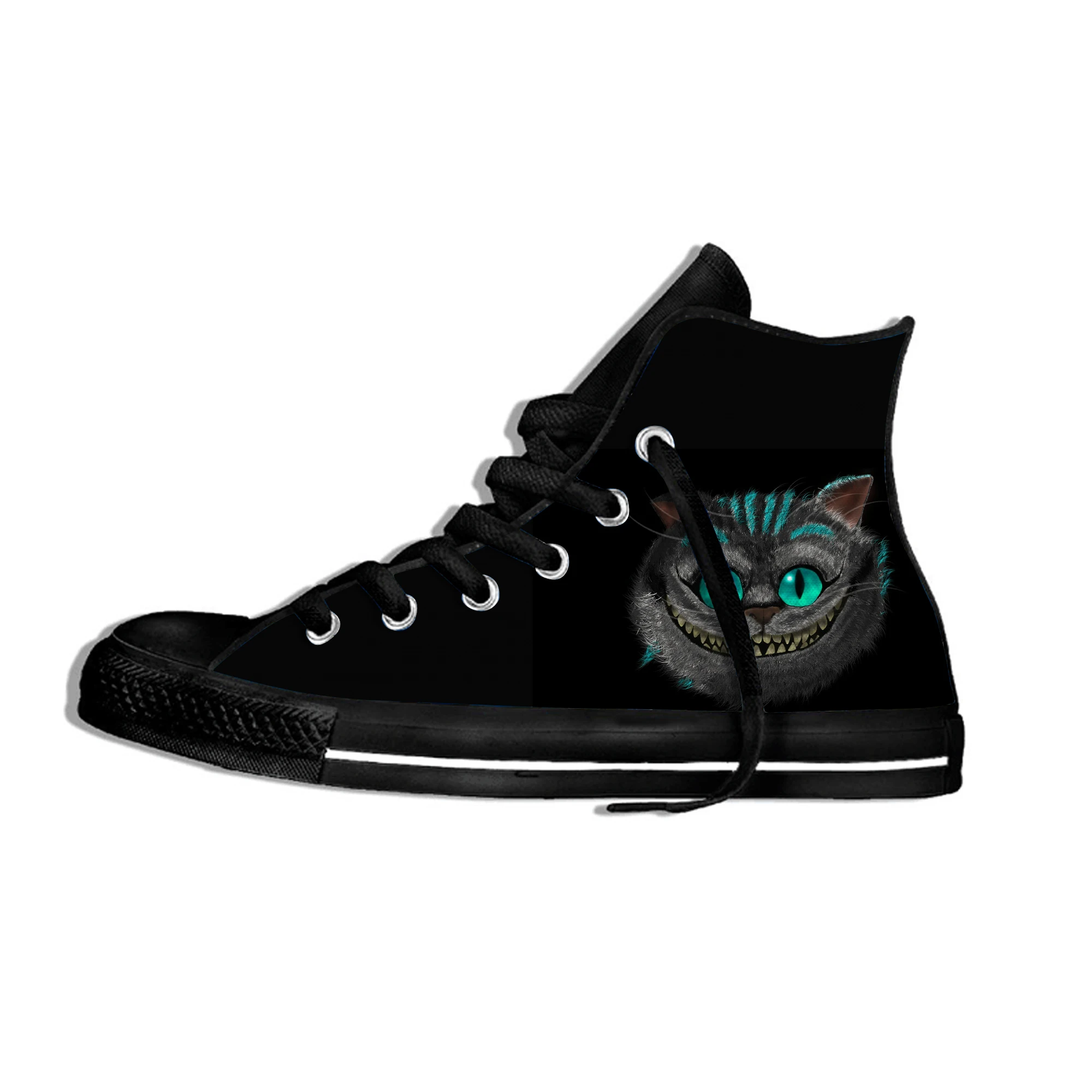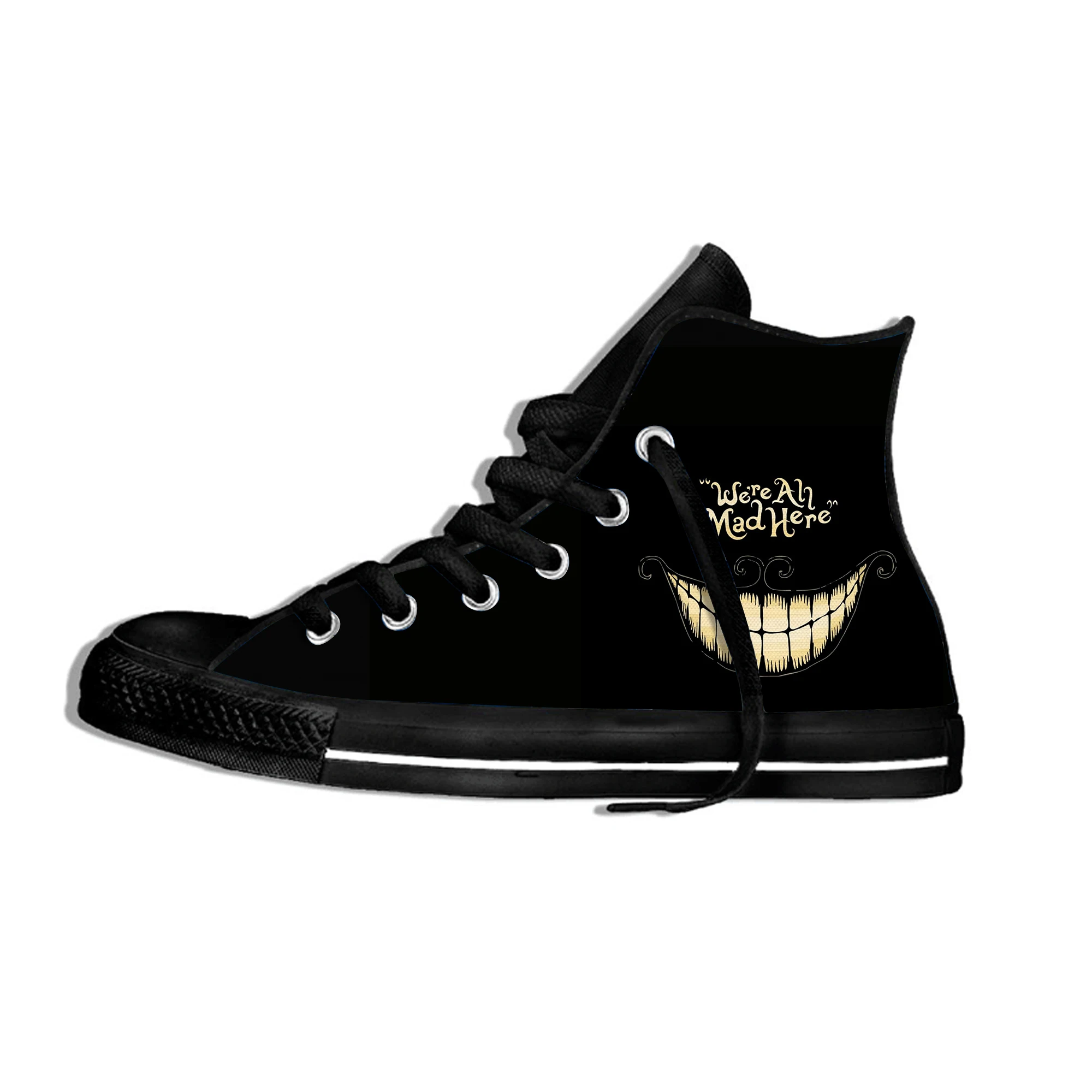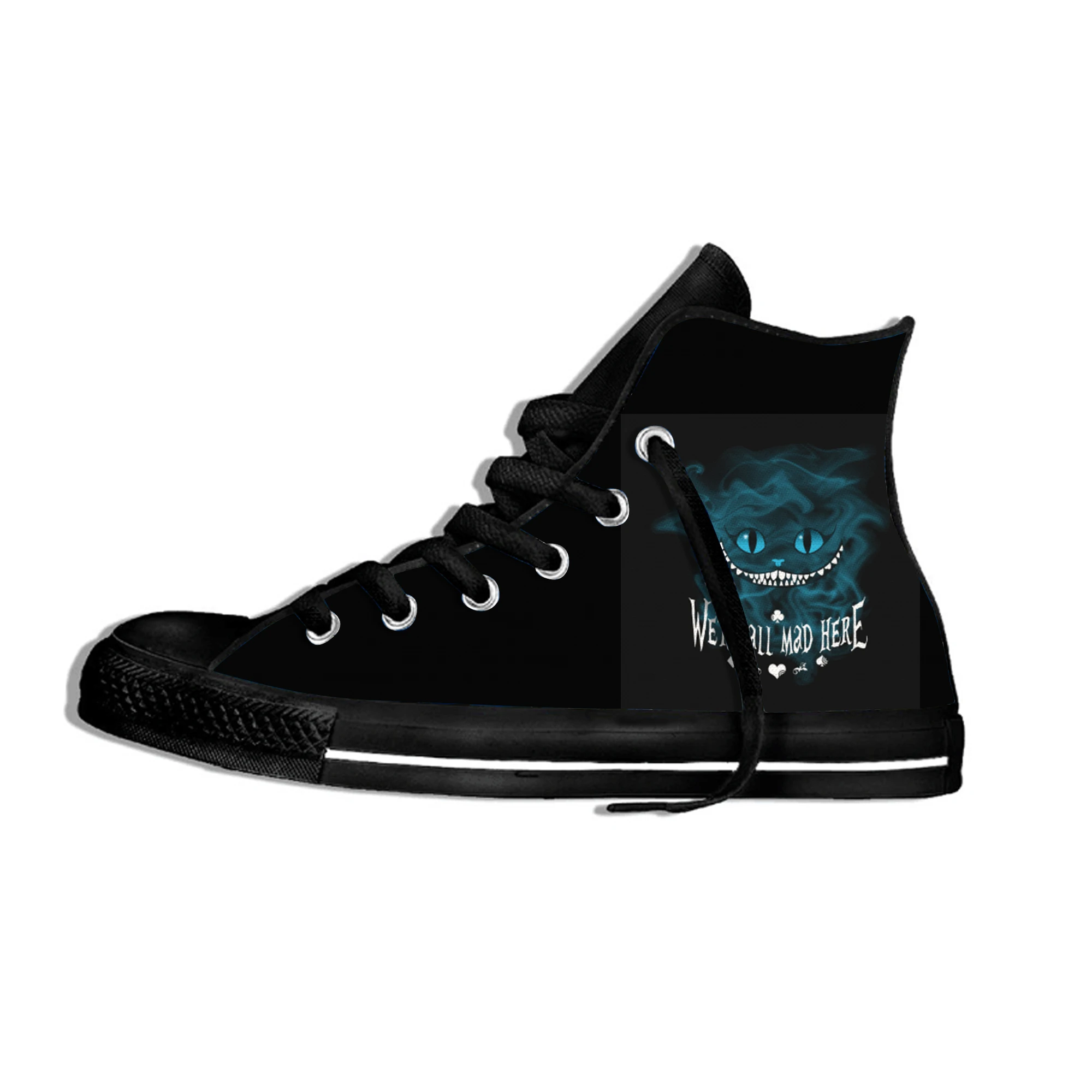 Модные легкие холщовые кроссовки с высоким берцем Cheshire Cat We are all mad here art, повседневные дышащие кроссовки для мужчин и женщин