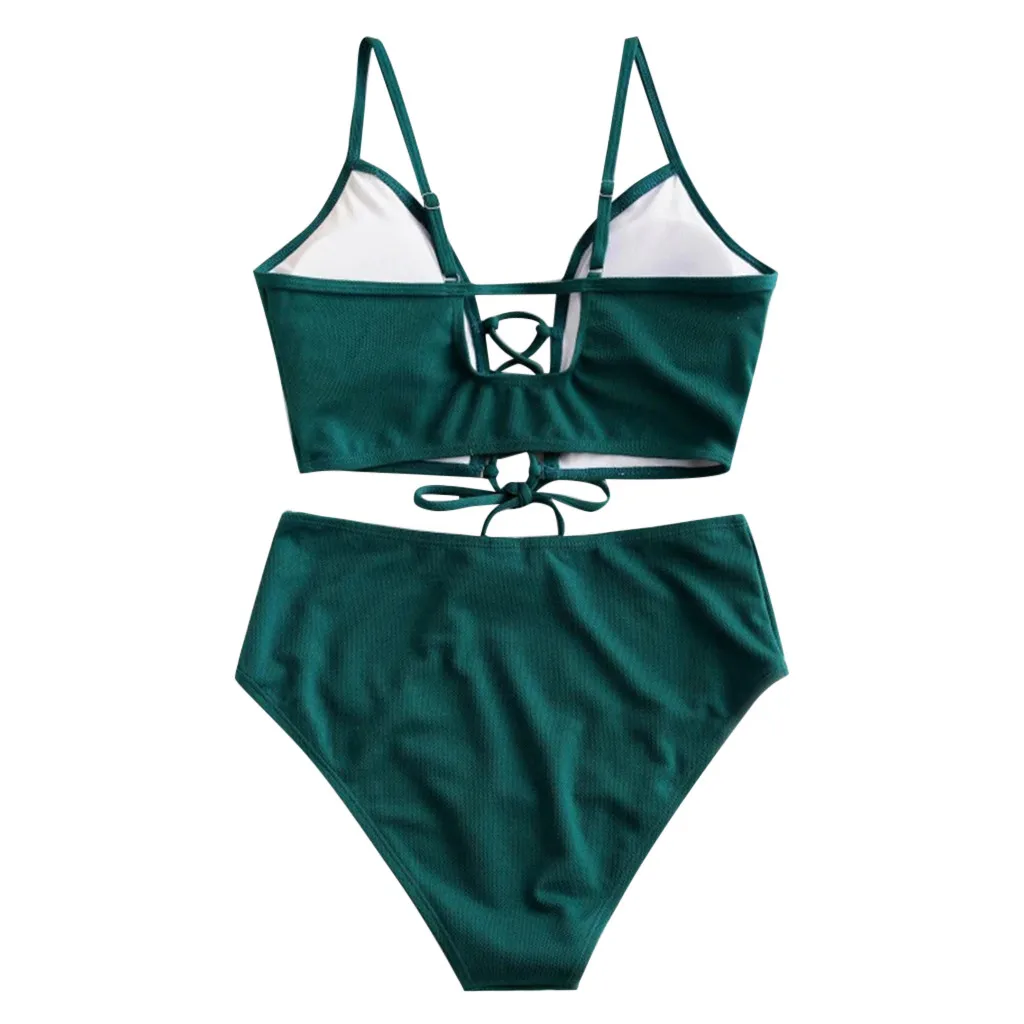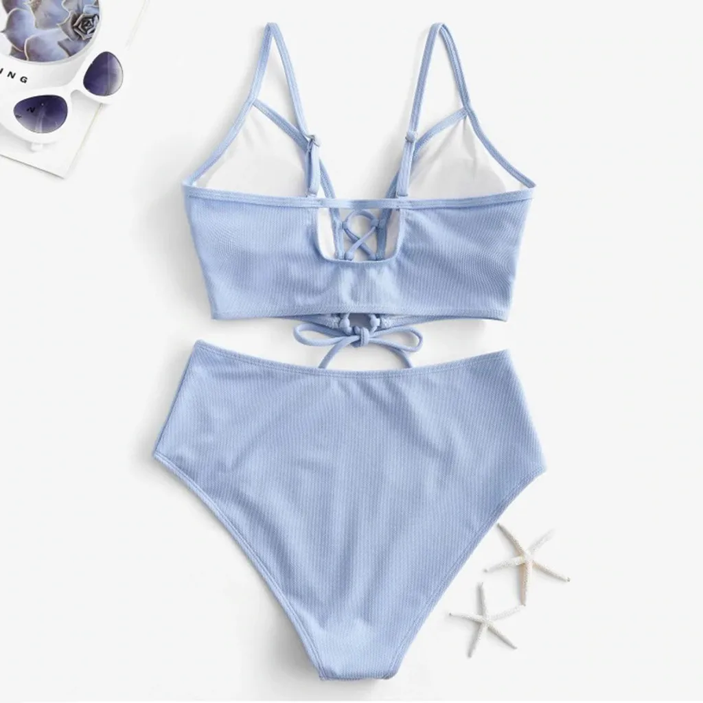 Купальник женский, раздельный, с высокой талией, на шнуровке, #35