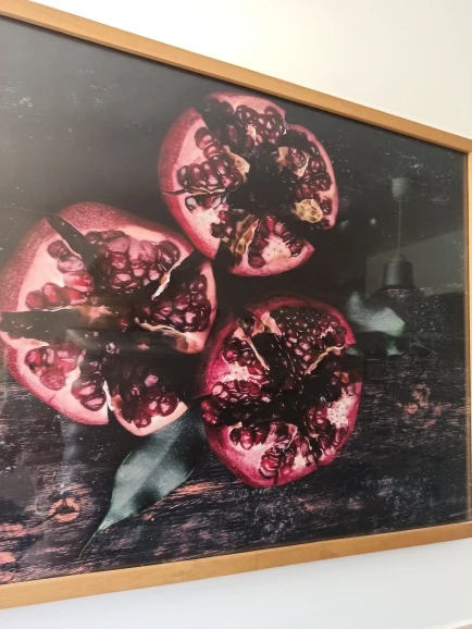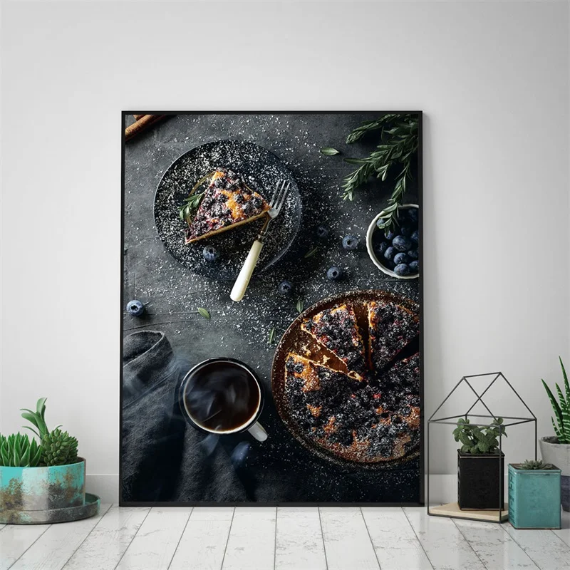 Искусство на холсте с рисунком еды, черники, пирога, граната, яблок...