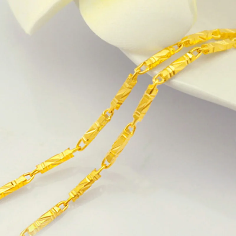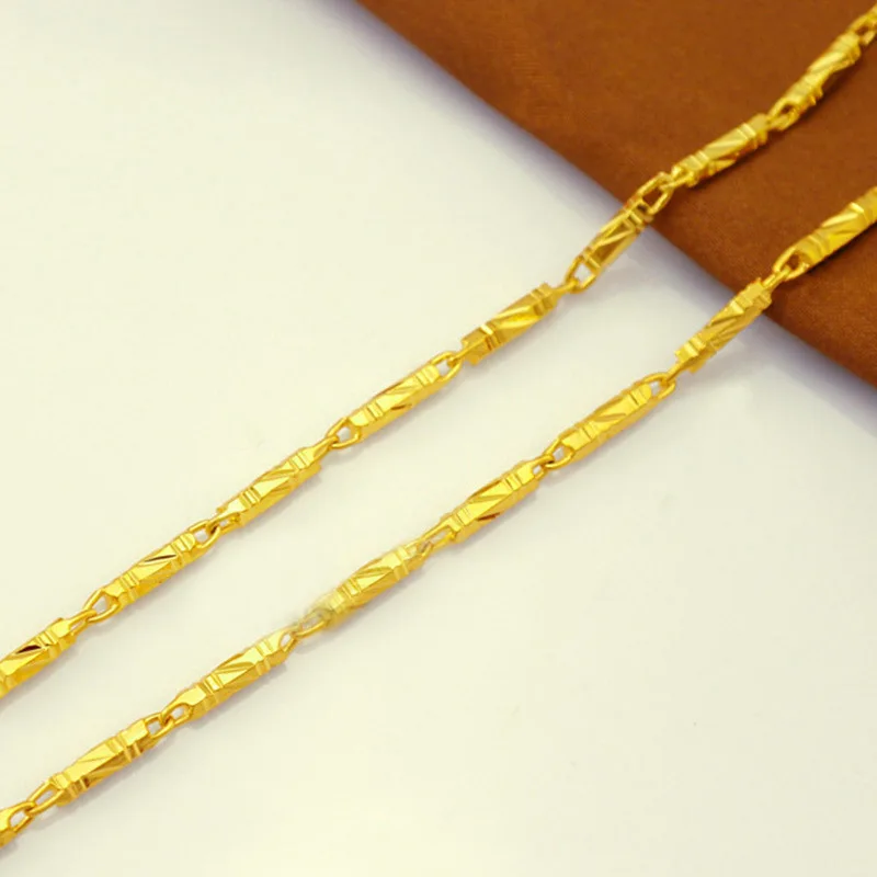 OMHXFC оптовая продажа, Европейская мода, мужской свадебный подарок для вечеринки, длина 46 см, ширина 2,5 мм, цилиндр, настоящая 24KT Золотая цепочка, ожерелье NL28